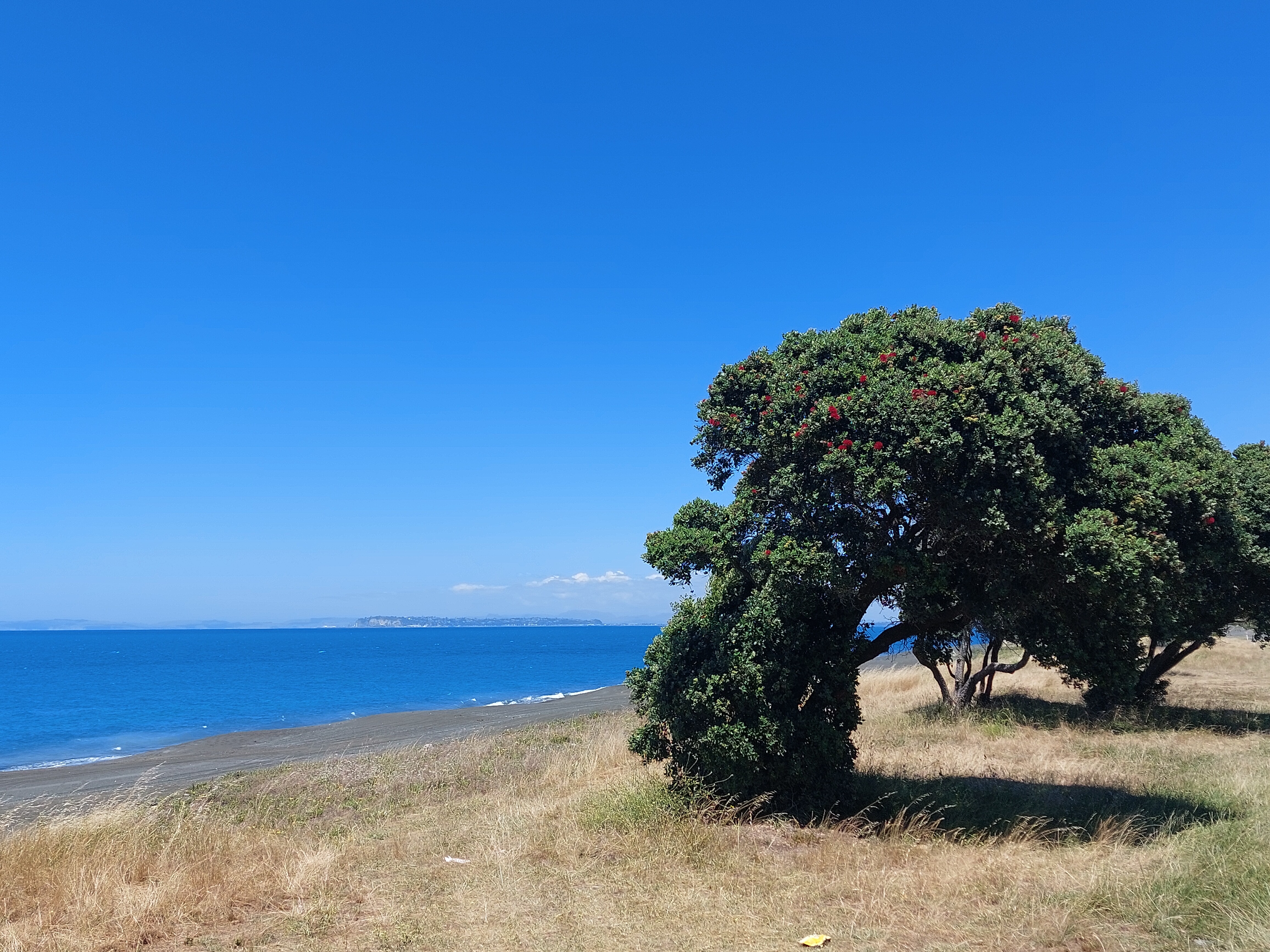 And we’re back today. Napier in the distance and pohukutawa tree on the right side