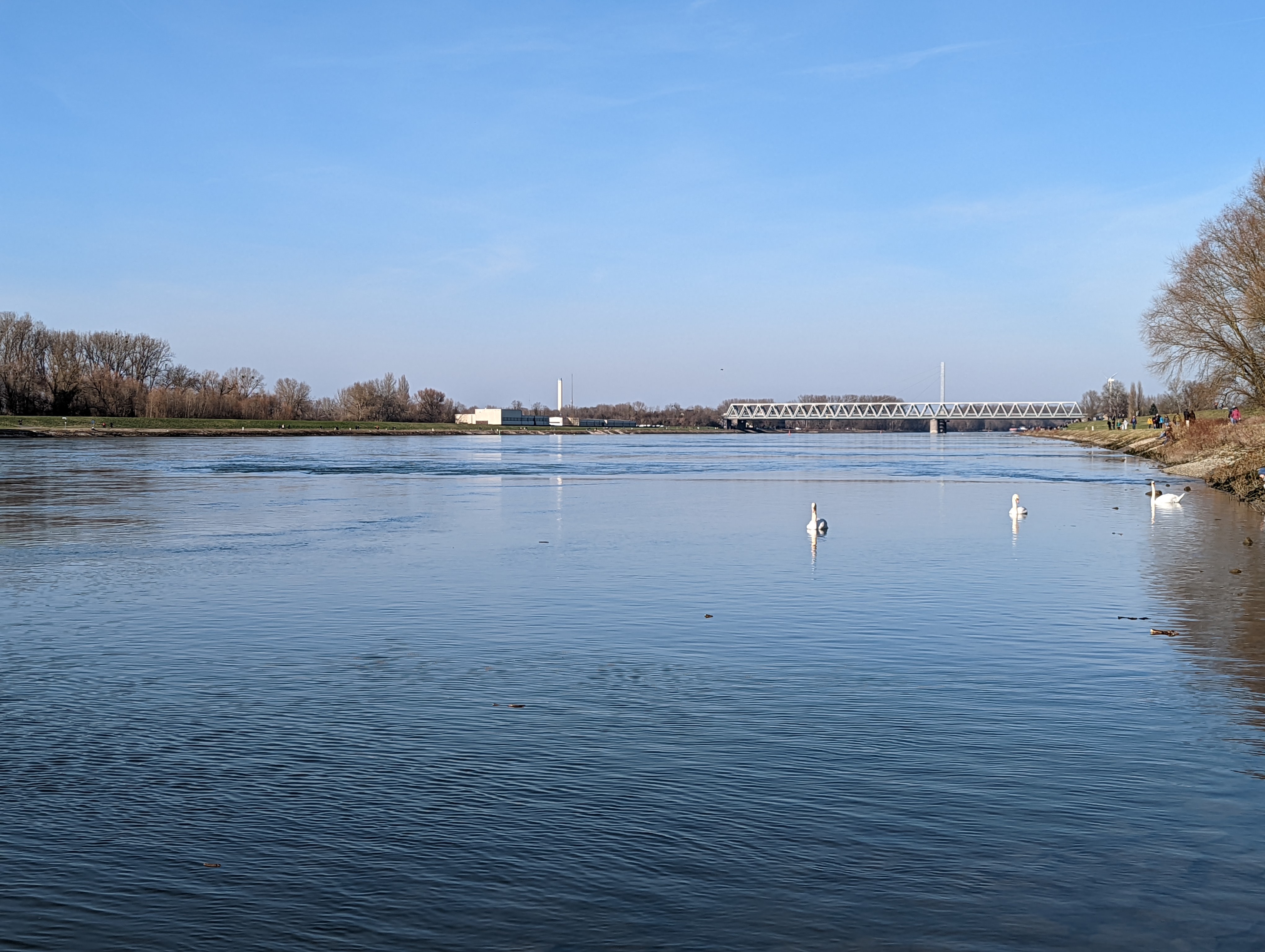 Not far from home, the Rhine flows. One direction is this. The bridge is being renovated all the time because someone has been blocking building a second bridge somewhere further down to enable this one being torn down, it is the only connection between Baden Württemberg and Rhineland Palatinate for about half an hour in each direction unless you want to bet on that one ferry.