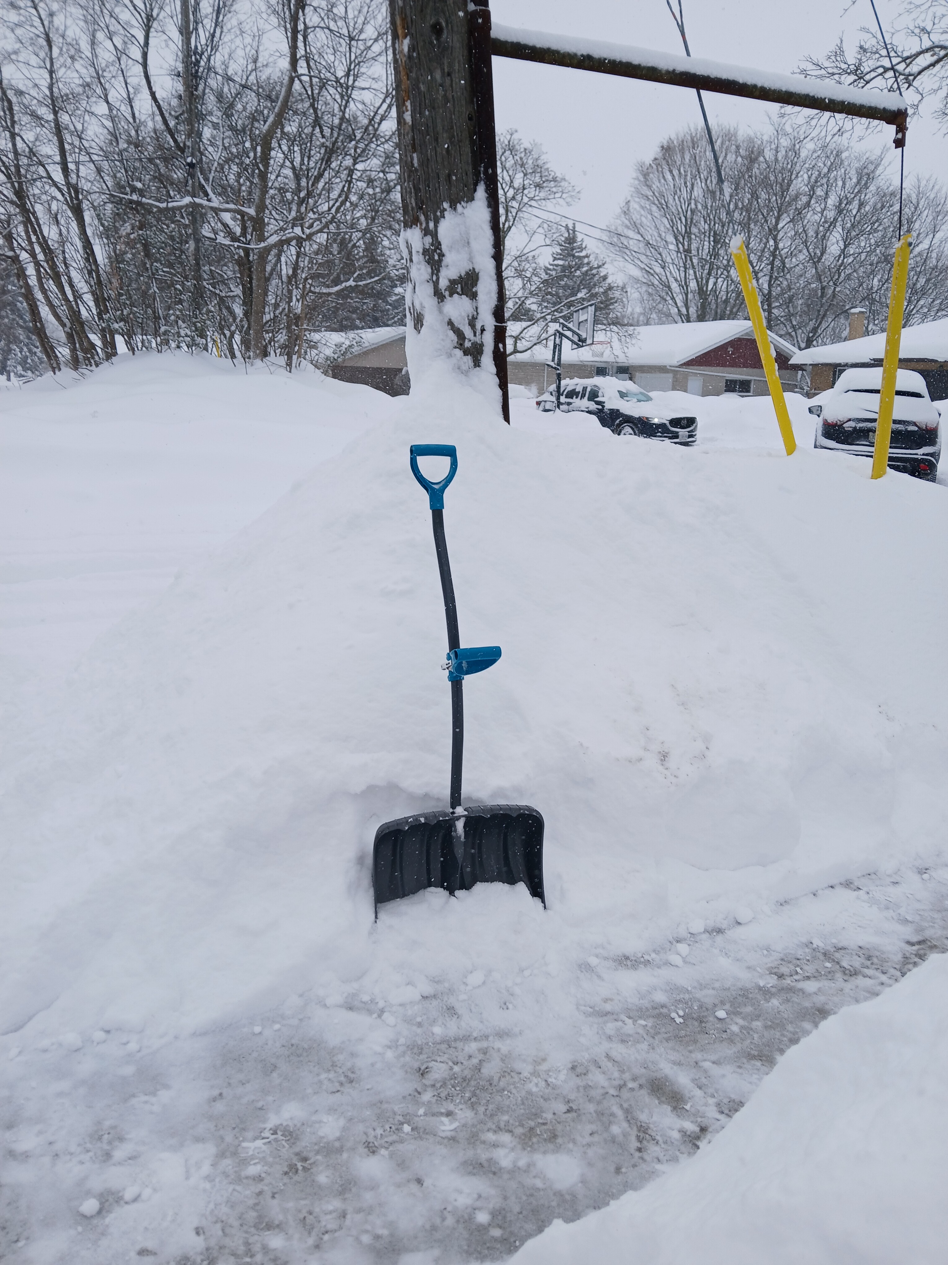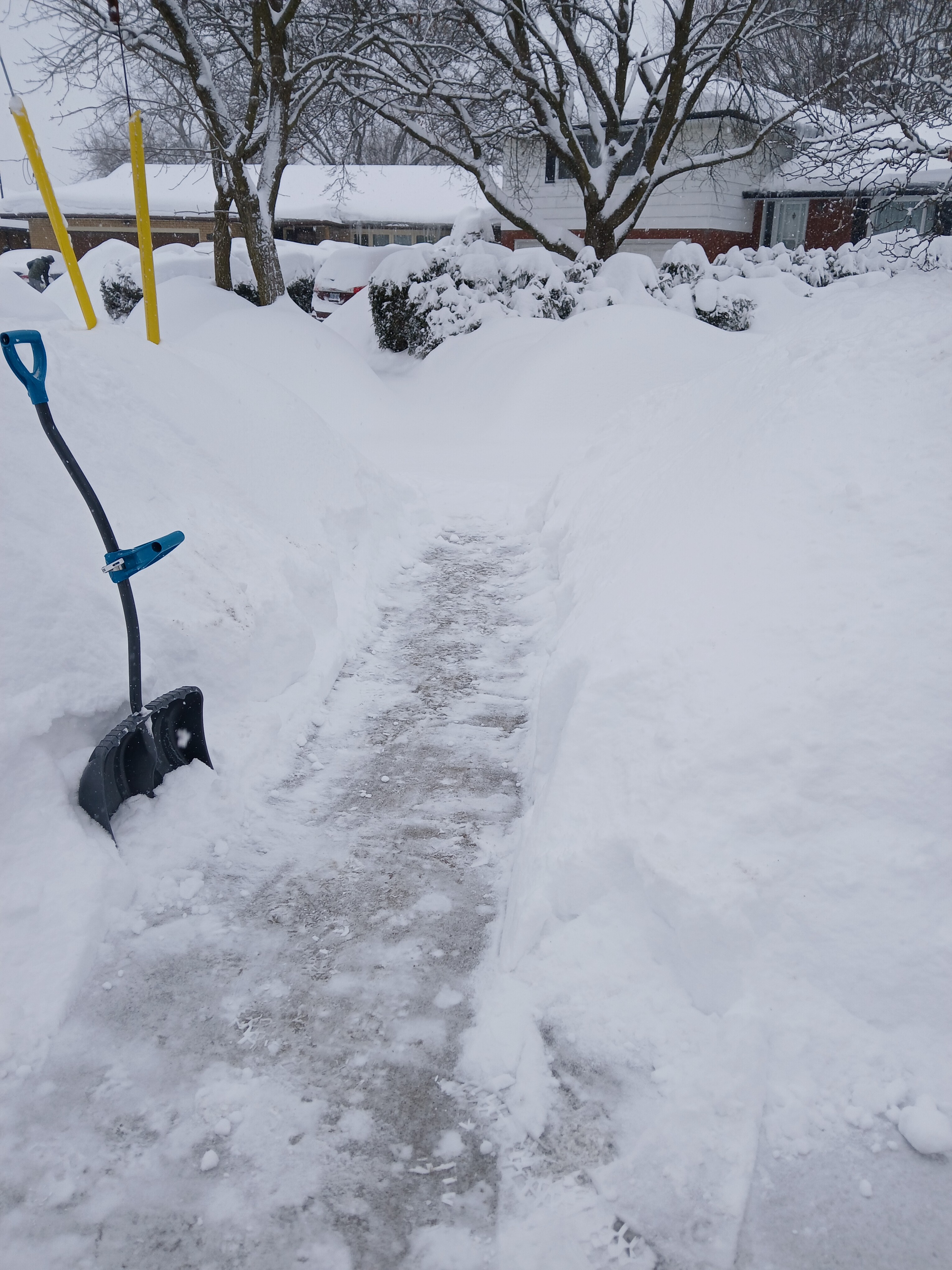The big danger in the front is the solar panels: when it gers warmer, sometimes full sheets of snow and ice will slide off the roof. Doesn’t happen often though.