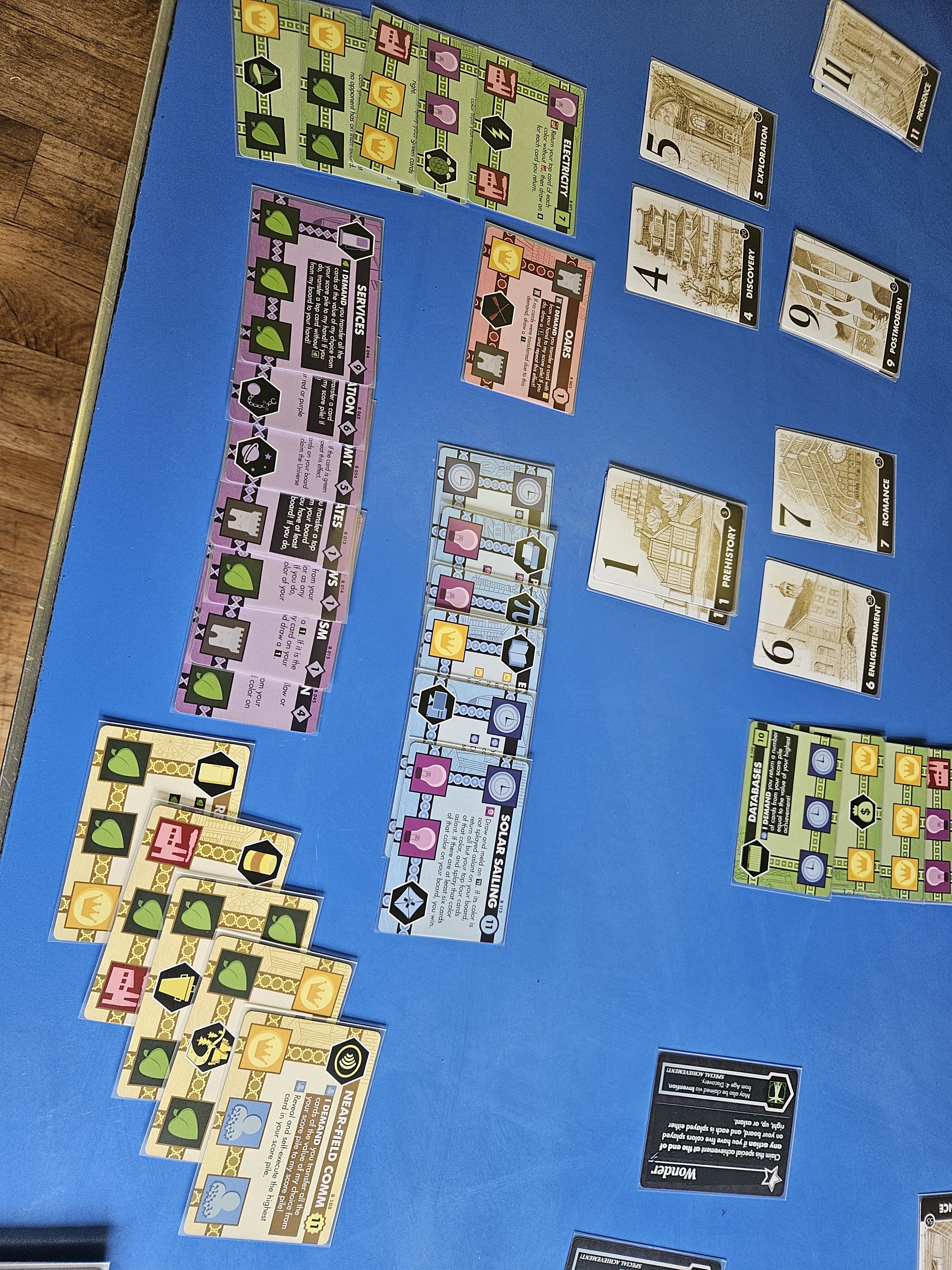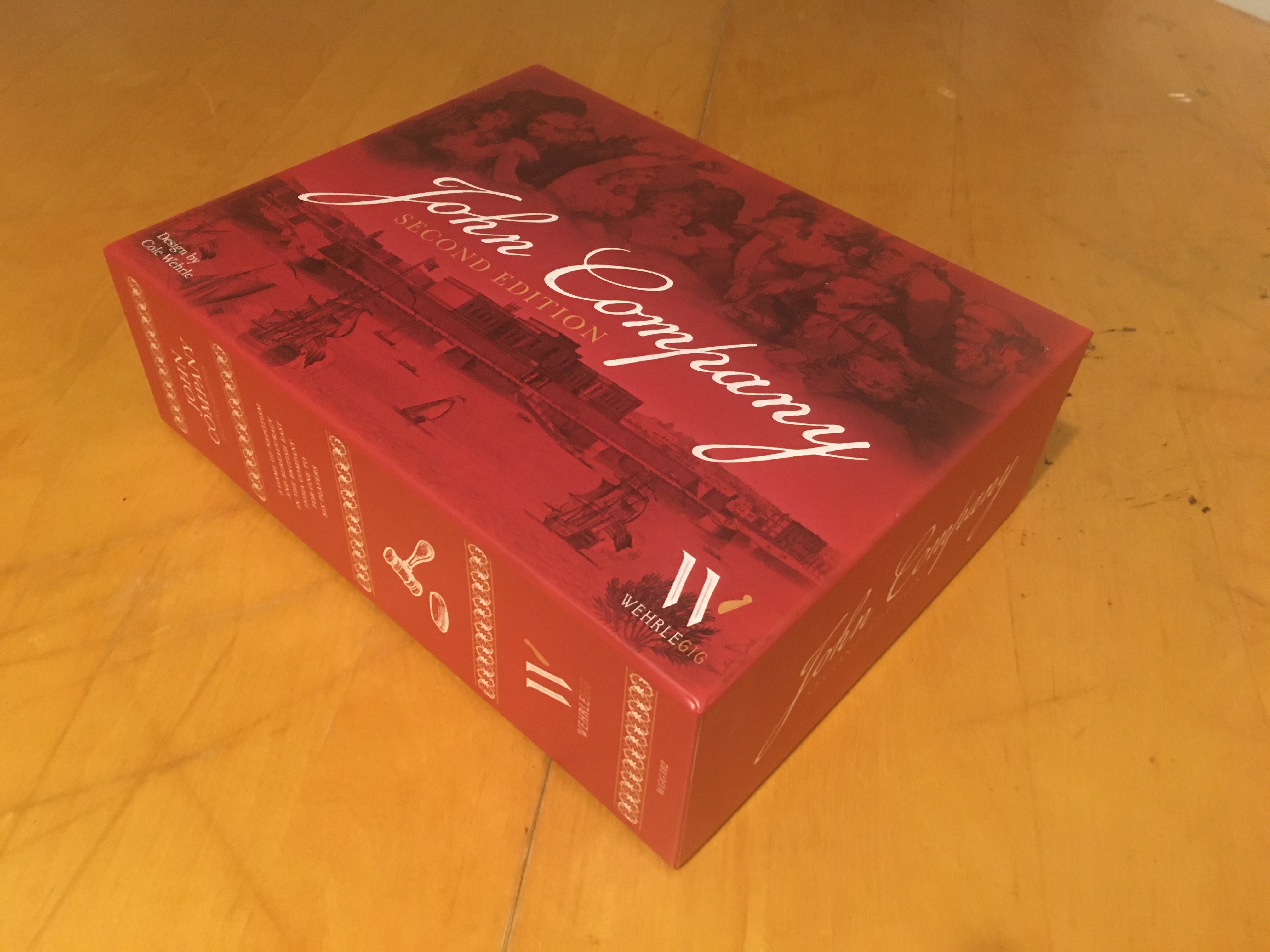 John Company took just under 7 hours which is probably tooo long for a board game. This did include first time (non-board-gamer) players, as well as a couple of tea breaks. And we had to relocate from outside to inside after it started raining in the garden. But what a wild game! We mostly played cooperatively, but I was the only person seeking shares to keep the company afloat, which meant that I didn’t have much opportunity to retire (or pay for retirement) at the end. I did accumulate plenty of power for a bonus but ended in 3rd place, after trading away a powerful blackmail card that allowed someone to steal the win with some enormous retirements at the end.