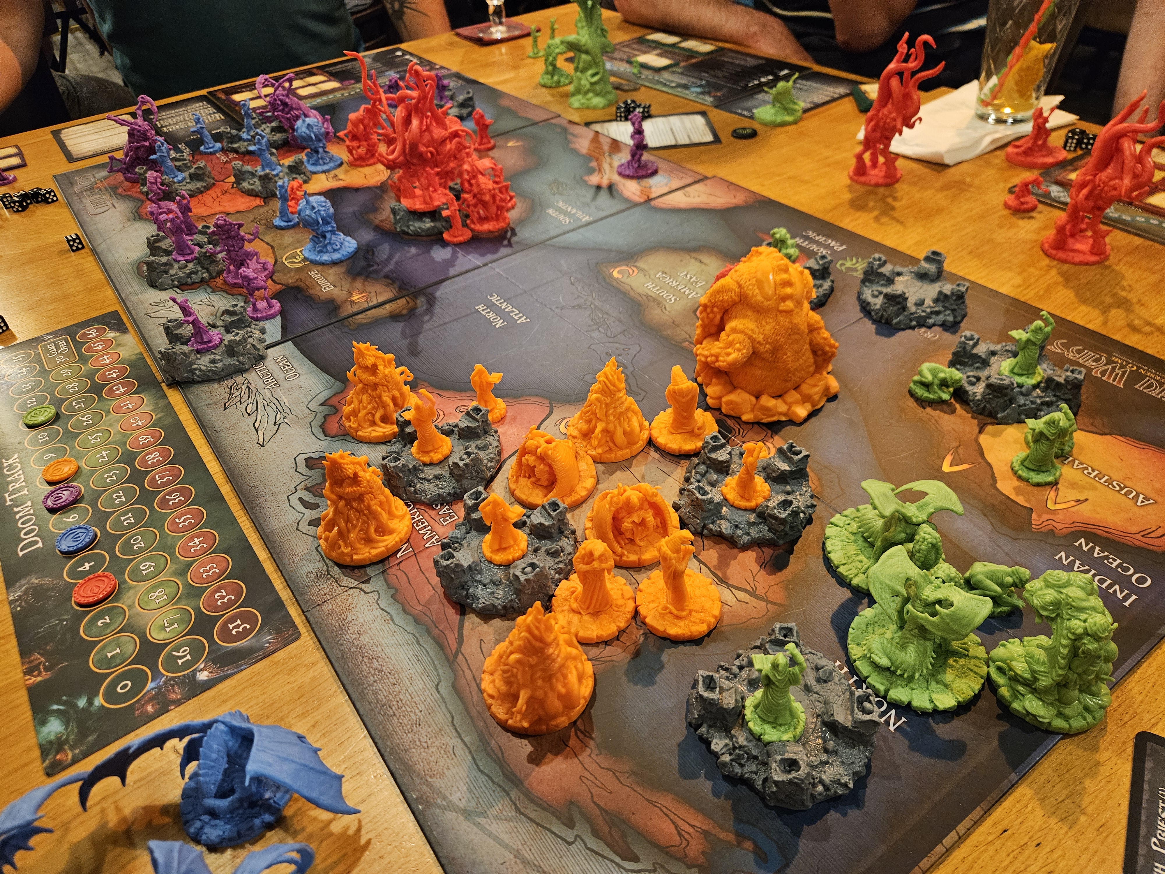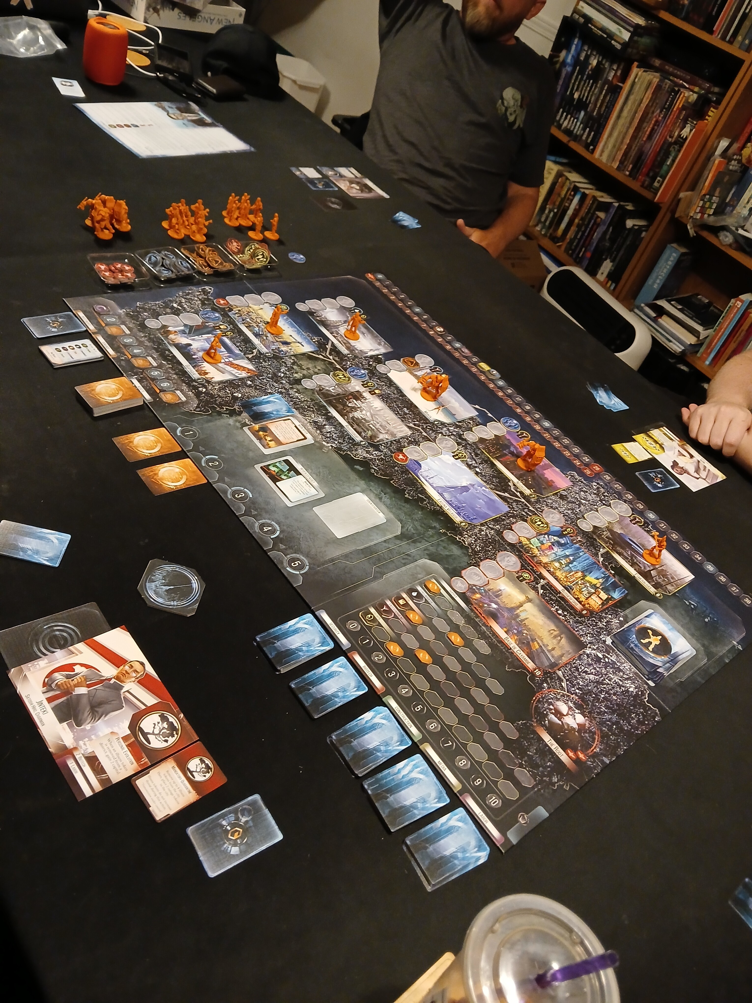 Started the day with Cthulhu: Death May Die – Fear of the Unknown. Interesting episode, it involved some dexterity as we flicked a dice to land in a space. We weren’t doing very well at it, and considered house ruling it to make it a bit easier. We eventually did it, with a lot of “practice” attempts. Another part of the episode required someone to gain the “drunk” condition, and i was lucky (or unlucky) enough to be the first player to gain the condition. Unfortunately having the condition also meant you couldn’t use any skills past level 1, which wasn’t a major problem at first, but was a bit later on. I managed to get myself killed, but luckily we had disrupted the ritual by then, and my teammates pulled out the win.