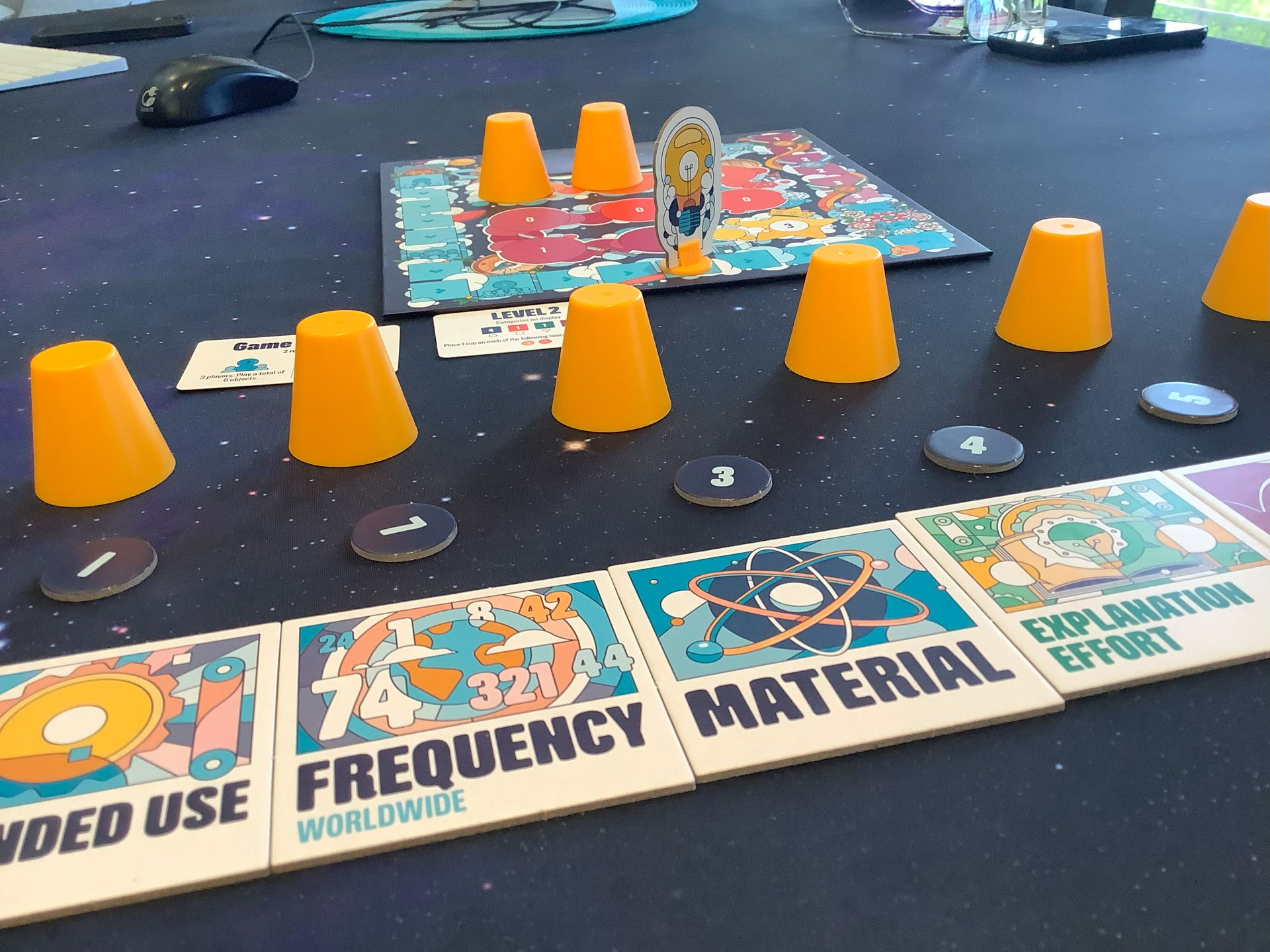 You pick up passengers at the central space station or any of the destination planets, and ferry them to where they want to go. You’re blind-drawing the passenger cards at the planets, but any unwanted passenger cards can be discarded face-up at the space station for anyone to pick up, so you always know what you can get from there.