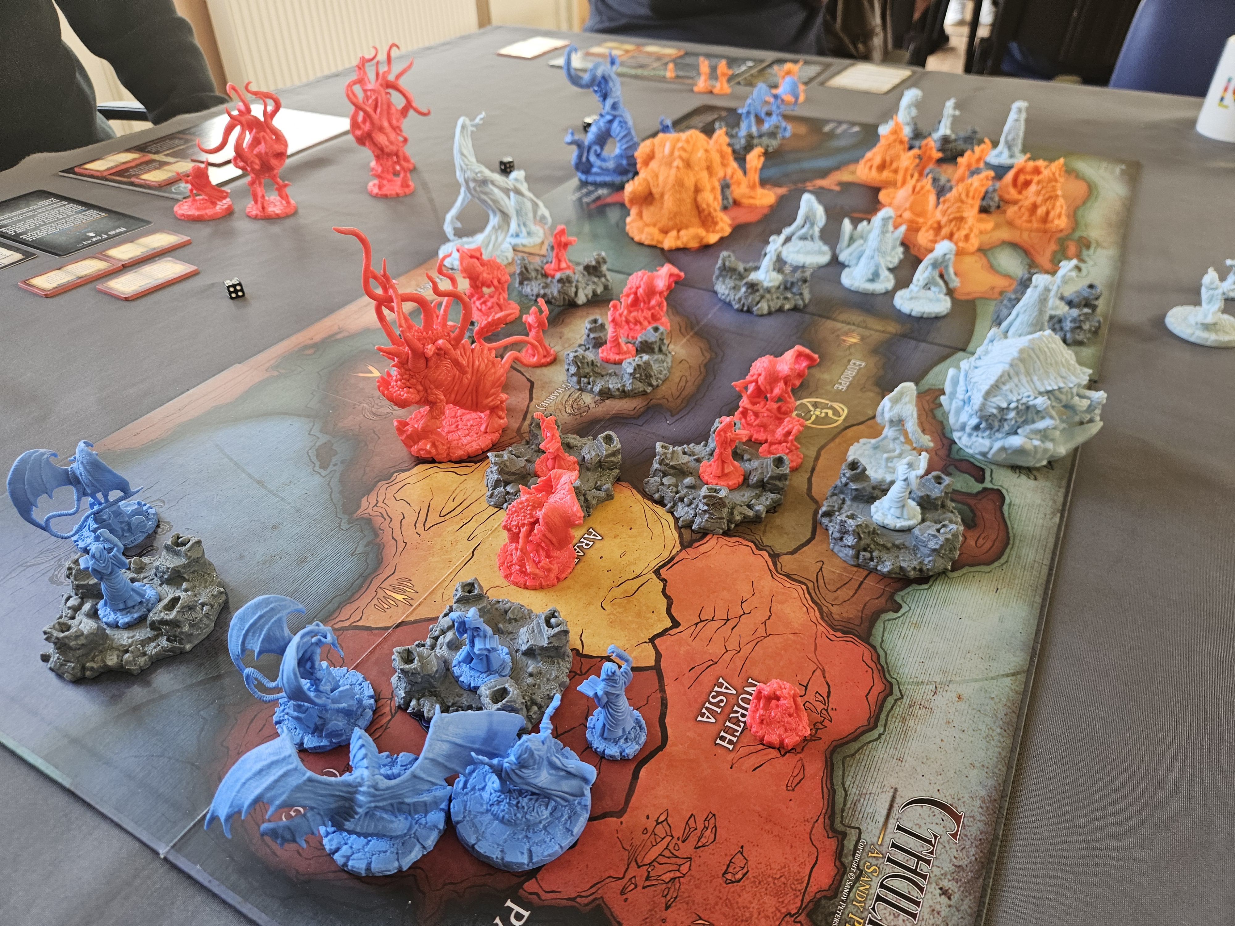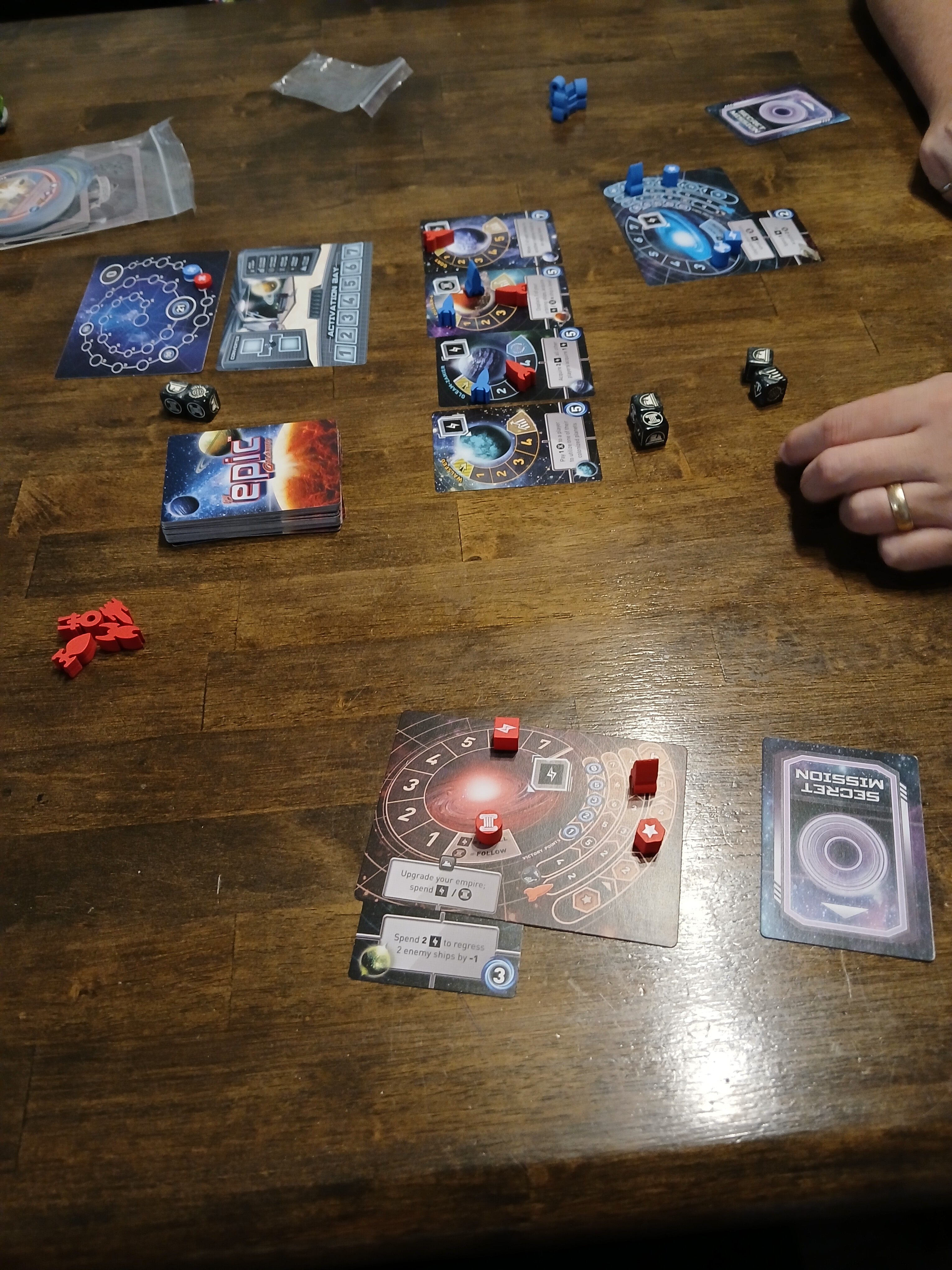 By the end of our game, we had still failed to discover one of the links in the production chain, which meant we had a tonne of Cyber resource (no planet buying it), but no Terra (because to produce Terra, you need to sell Cyber to the planet that buys it), and correspondingly no Plasma or Holo (the next two resources down the chain)… but that encourages players to diversify from just Pick Up And Delivery missions, which is nice.