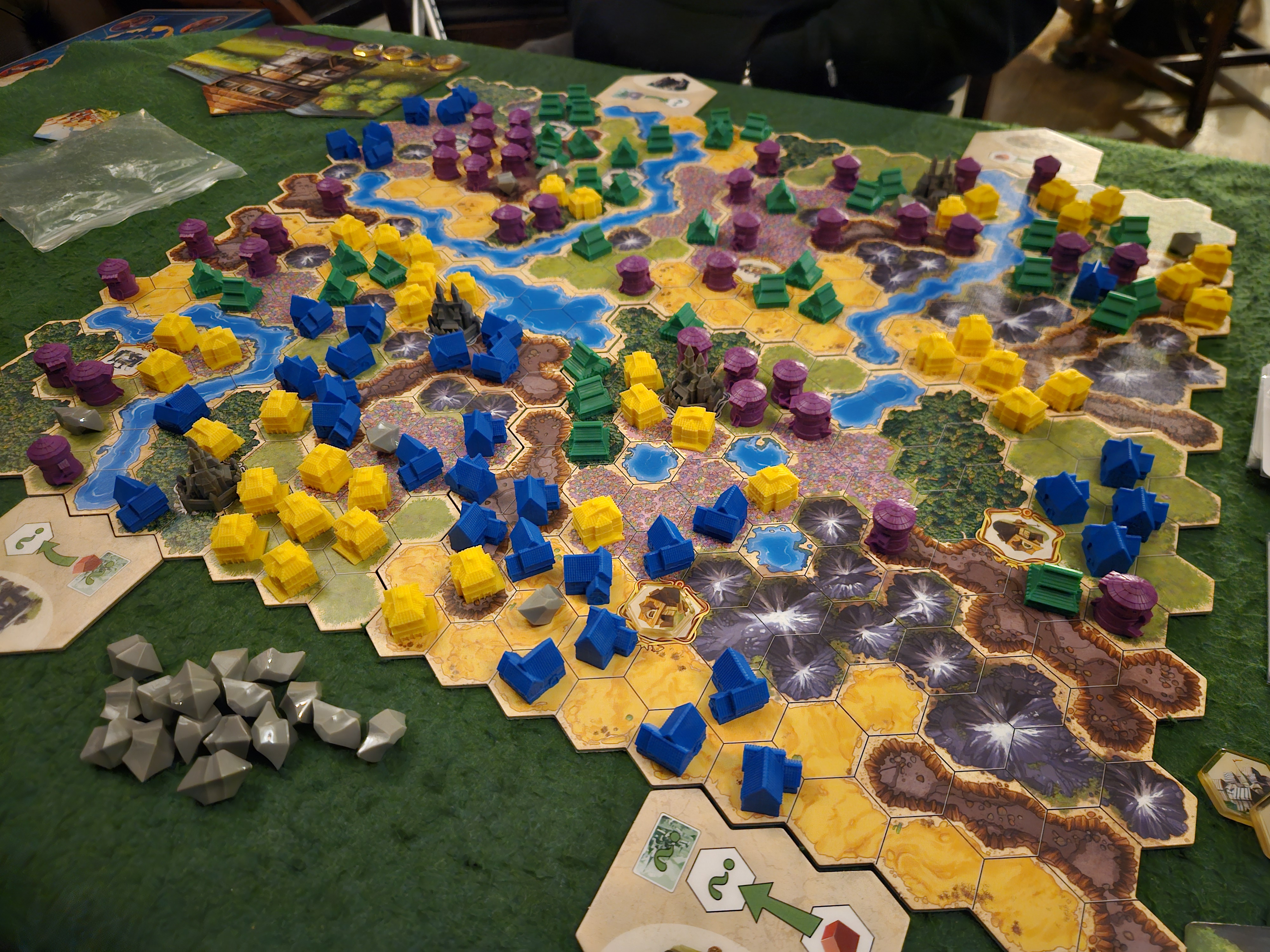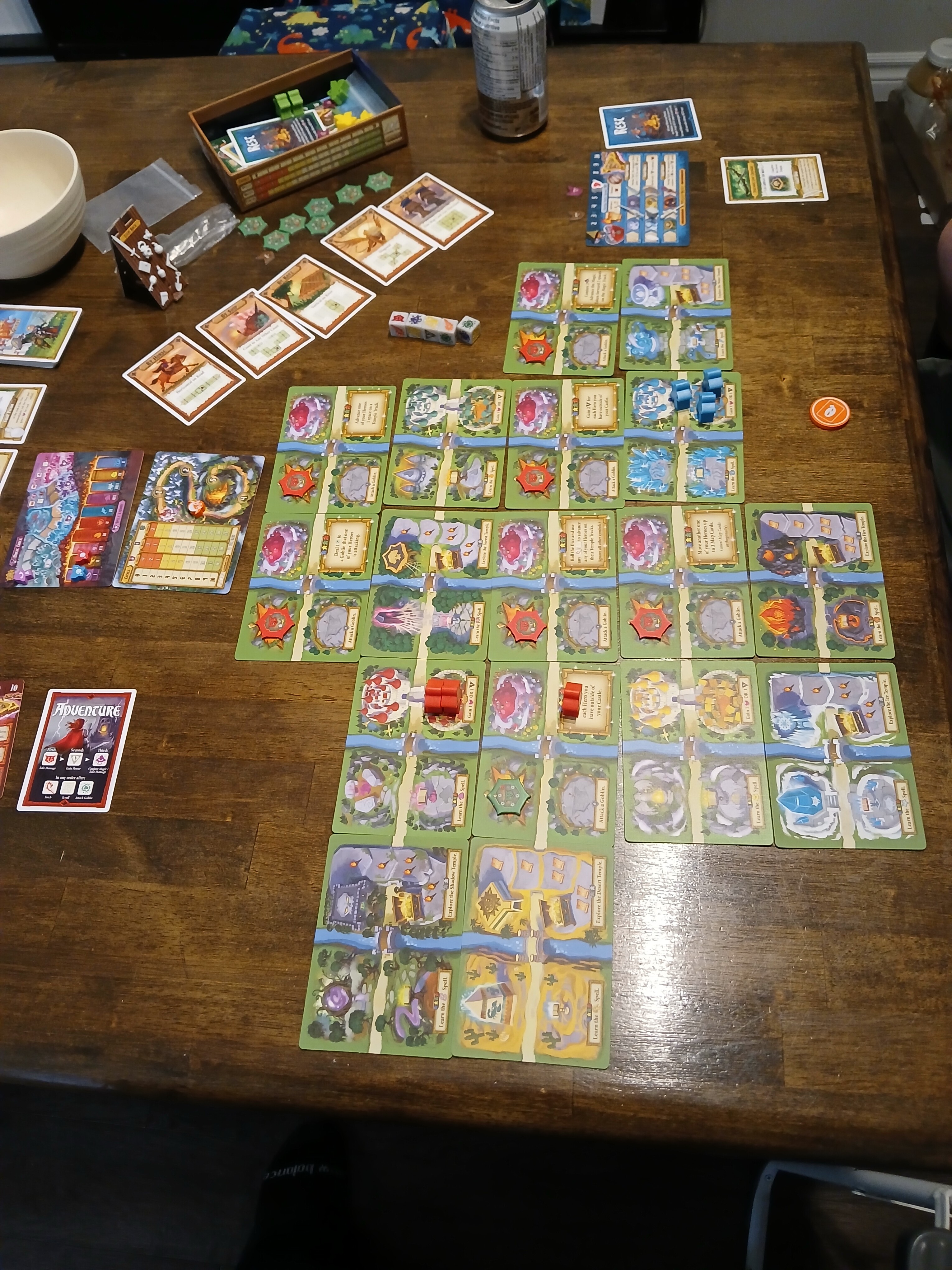 I picked 15VPs (technically "FP"s, since it’s Fame Points) as a stopping point, and Justin managed a decisive victory, nailing 4 VPs on his final turn. Really neat game, and I think the Expansion helps a lot with the flow of the game (especially the optional rule to not look at or choose Mission Cards until after your turn is over).