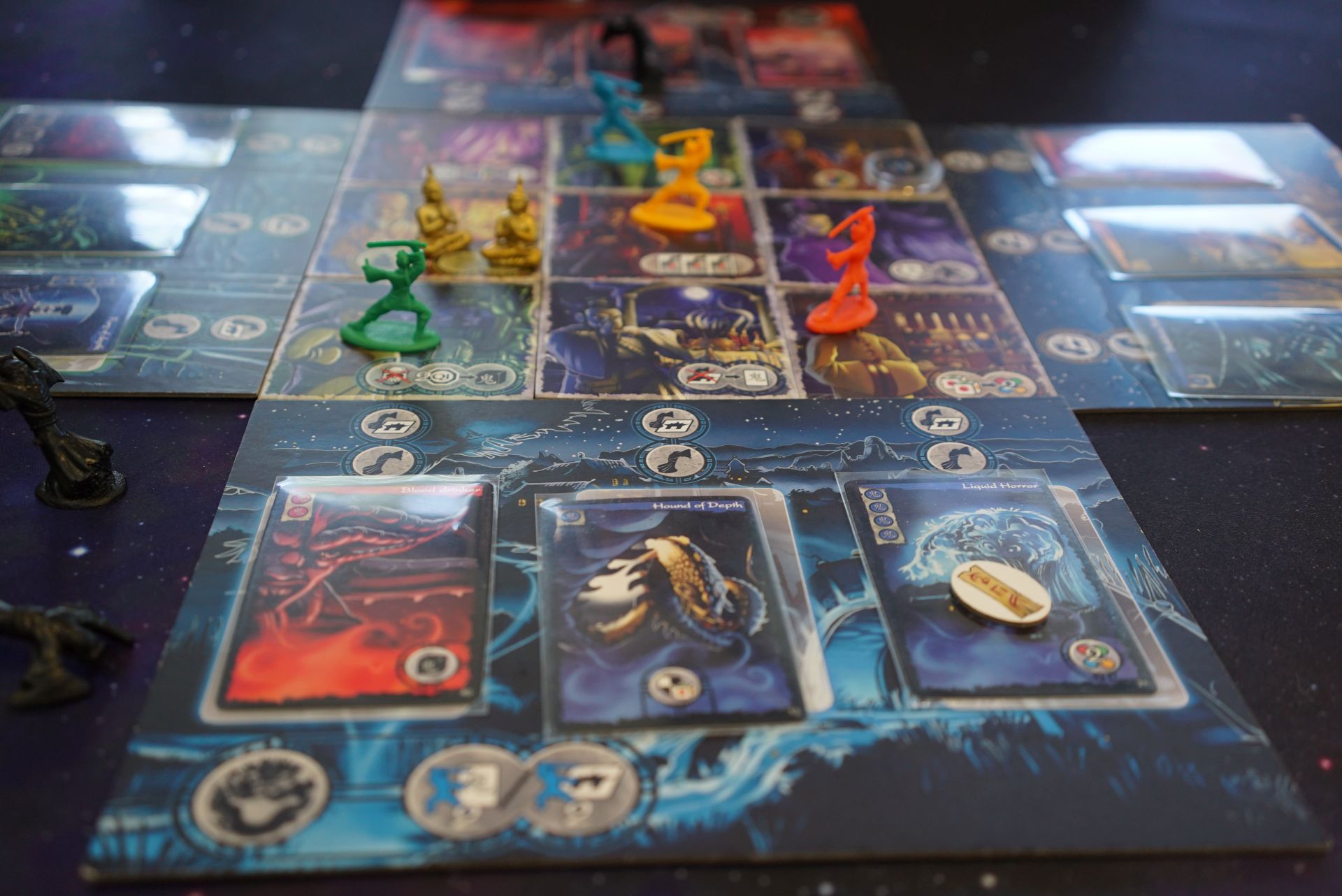 Ghost Stories, certainly not our first play. We had four players, so I thought that might have given us a better chance. But yet again we failed. I think we did a bit better this time, we were only a few cards from seeing the boss. It’s a bit demoralising. I felt we rolled really badly. We always vow to use the Buddhas more, and then we get side tracked with haunters and ghosts that take away abilities or dice. It always feels like a desperate struggle just to stay alive. And then we just spiral down and lose. Sigh.