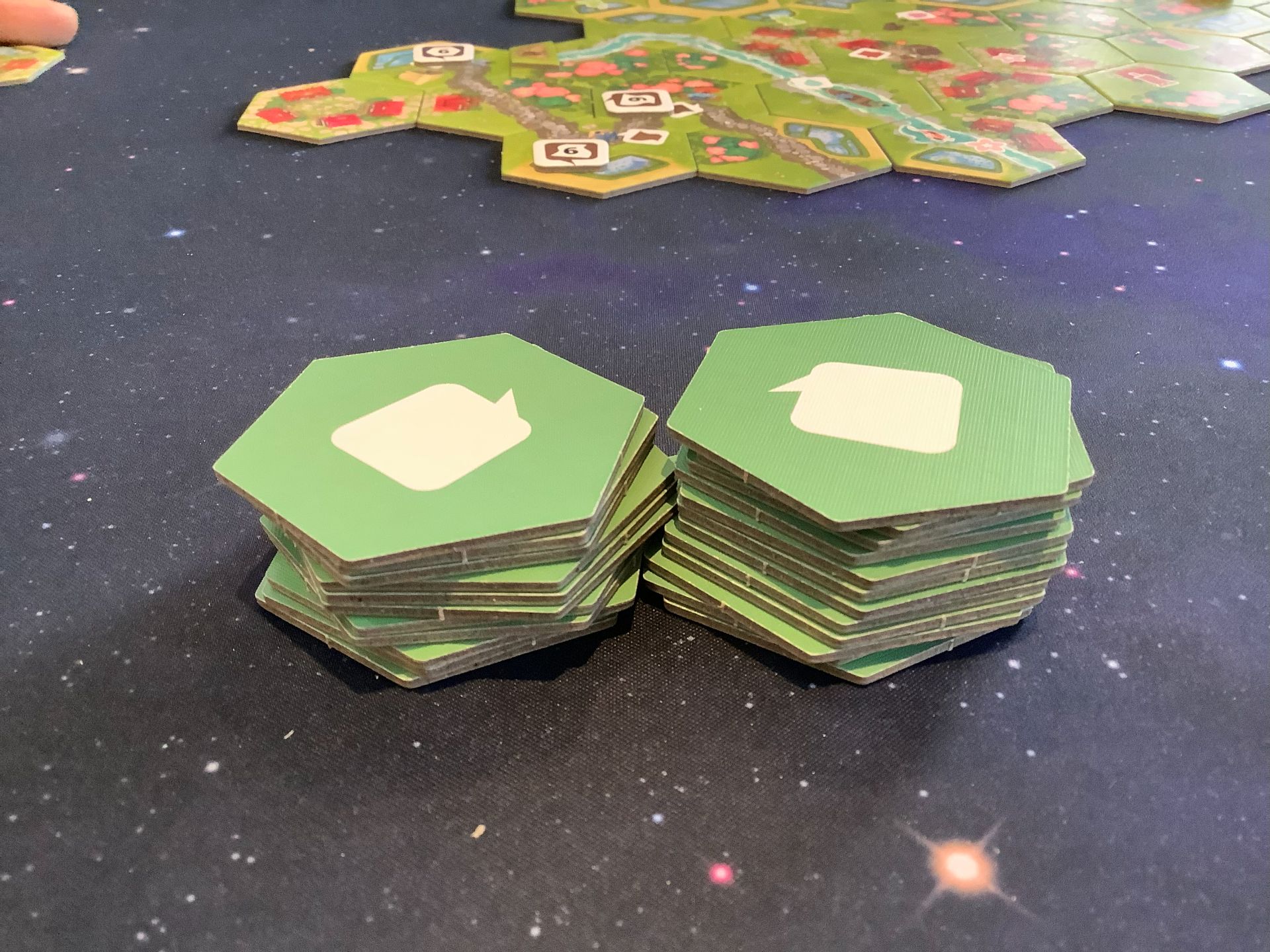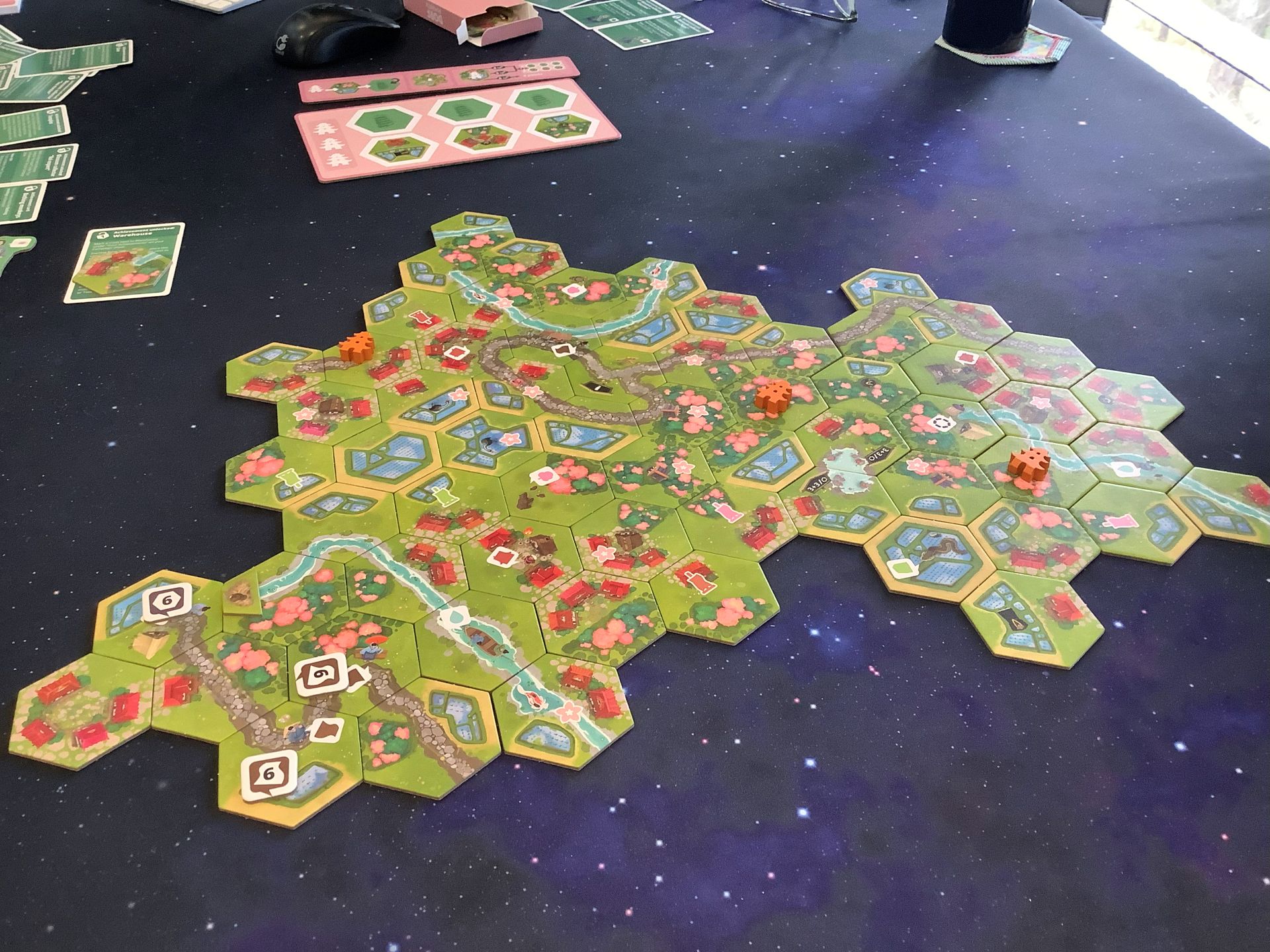 Dorfromantik: Sakura, our worse game – EVAR! We scored lower than even our first game. Needless to say, it was the games fault, we did our best. So many task tiles left over.