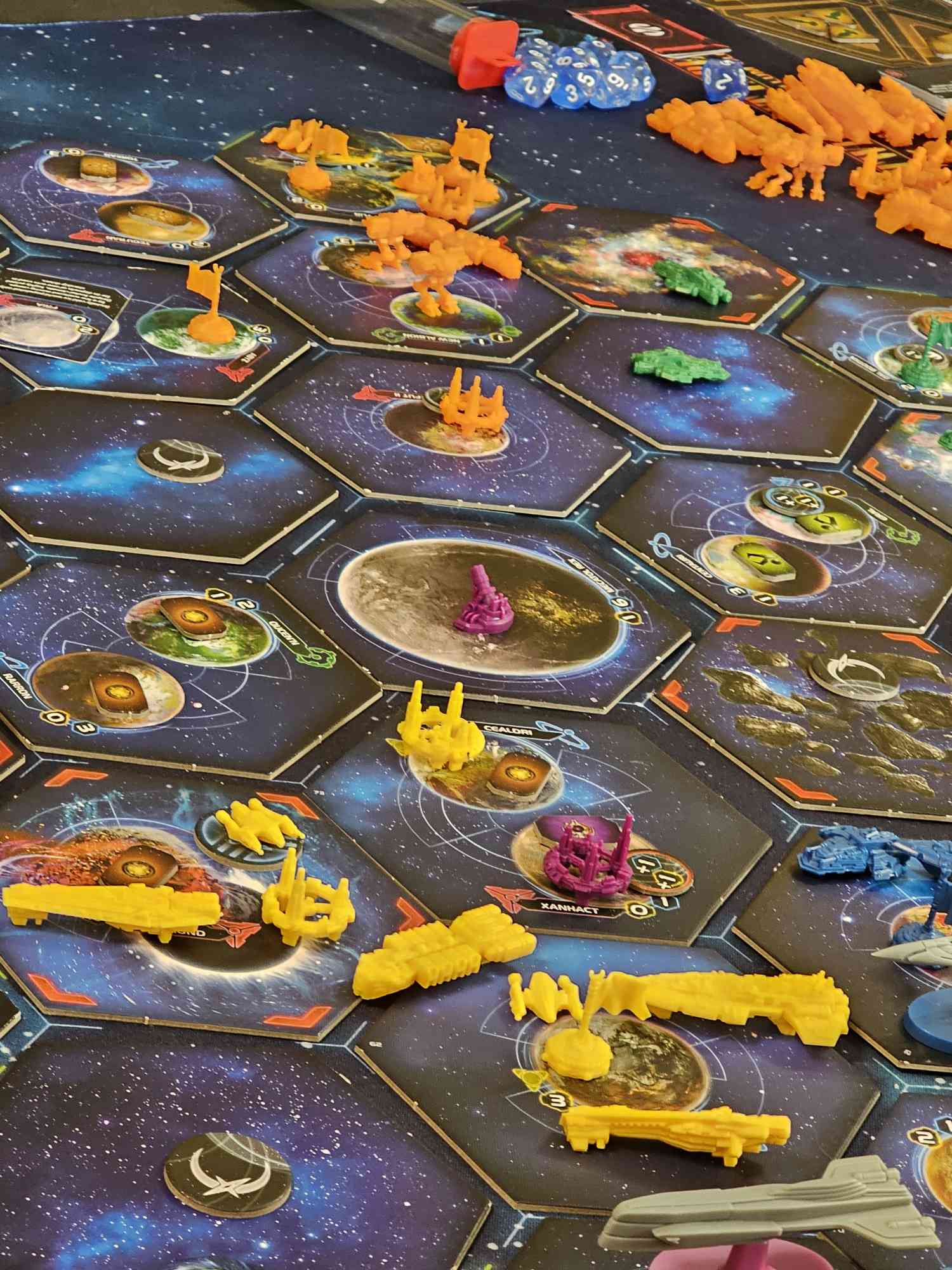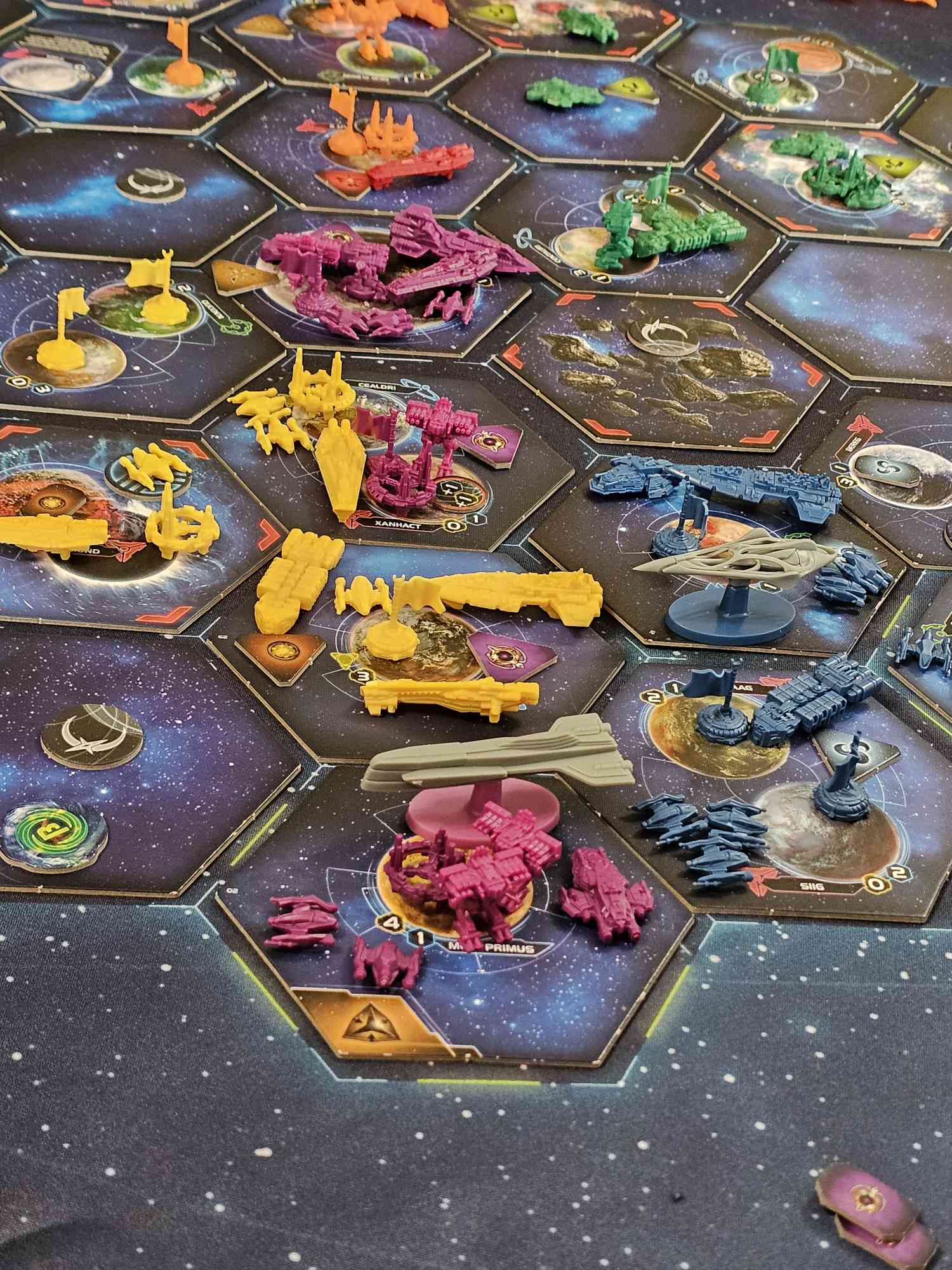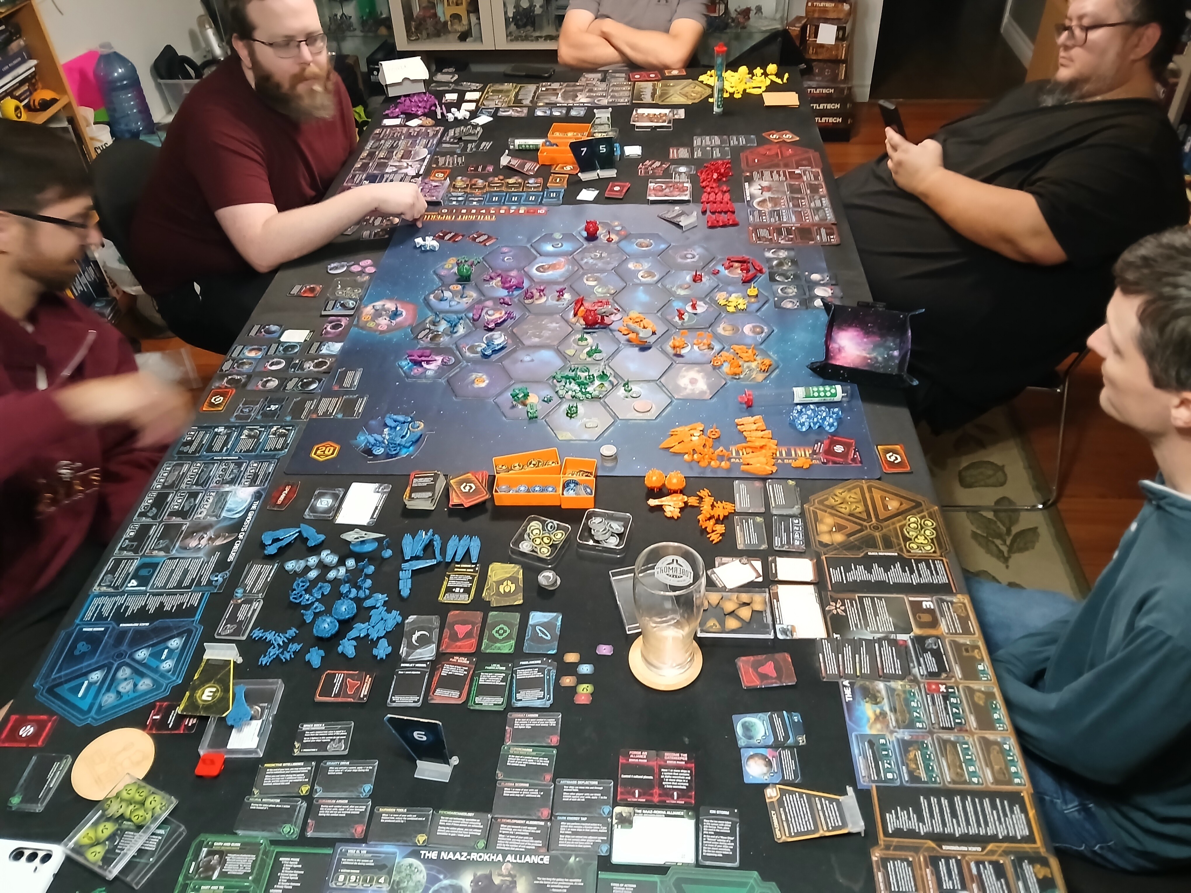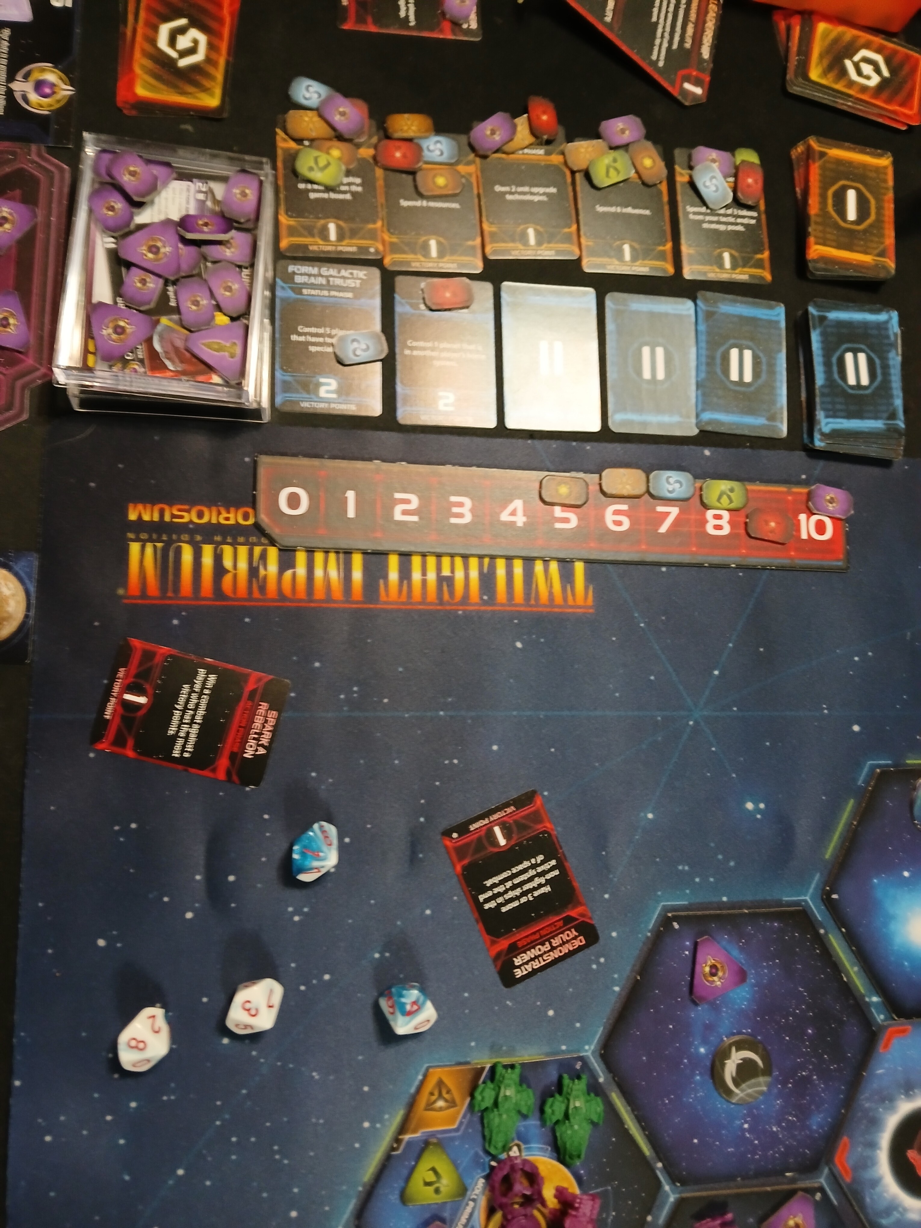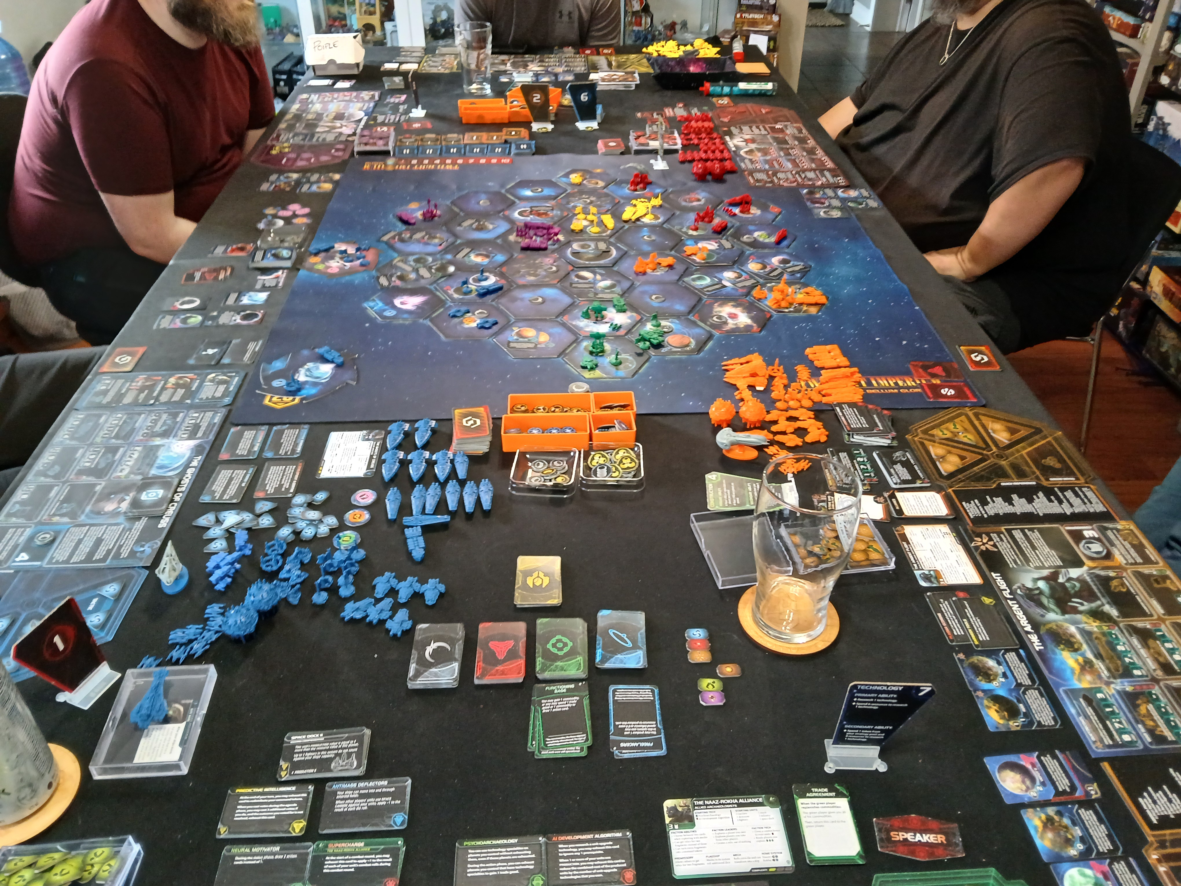 By the end of the game we were all close, but the early Keleres lead proved too strong. Turn 7 the Keleres landed their 10th point via winning a space combat and used a Secret Objective