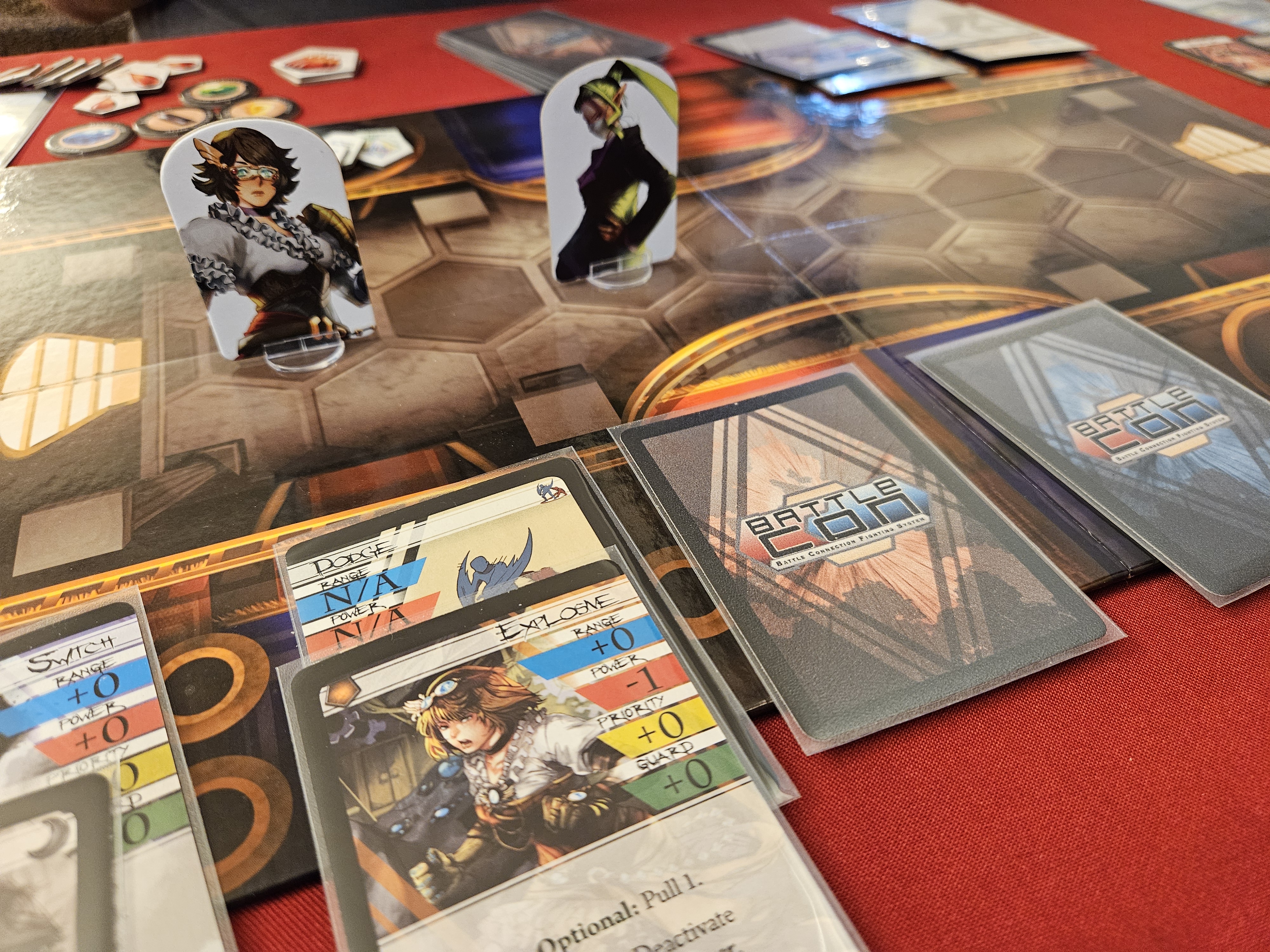 The guy was joyous that someone knows how to play Battlecon and loves it. We had an epic fight. I was Runika against Lucida. Runika got Artificers (e.g. Priority +2) which makes her a menace at early game, but if you hit her, you get to deactivate one of these.