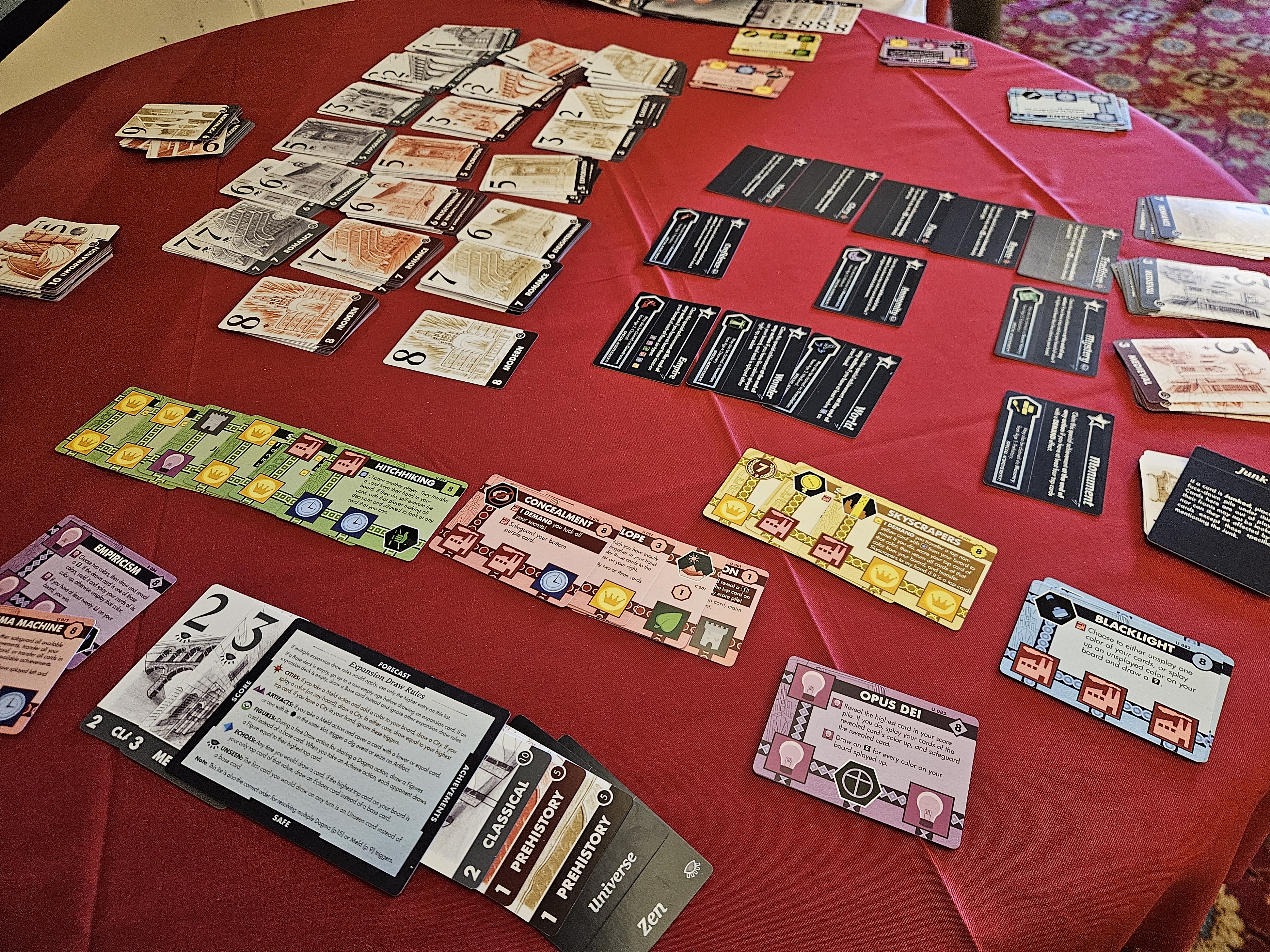 Greed Incorporated - A Splotter game that I really want to try. Easily one of the best new-to-me. The guy who made this pnp was the same owner of the Indo pnp. Great ideas and I would play it again, but it felt cyclical. We buff up our companies and then crash it so we get fired as executives and then earn our golden parachutes. …and then, rinse and repeat. Hmmm…