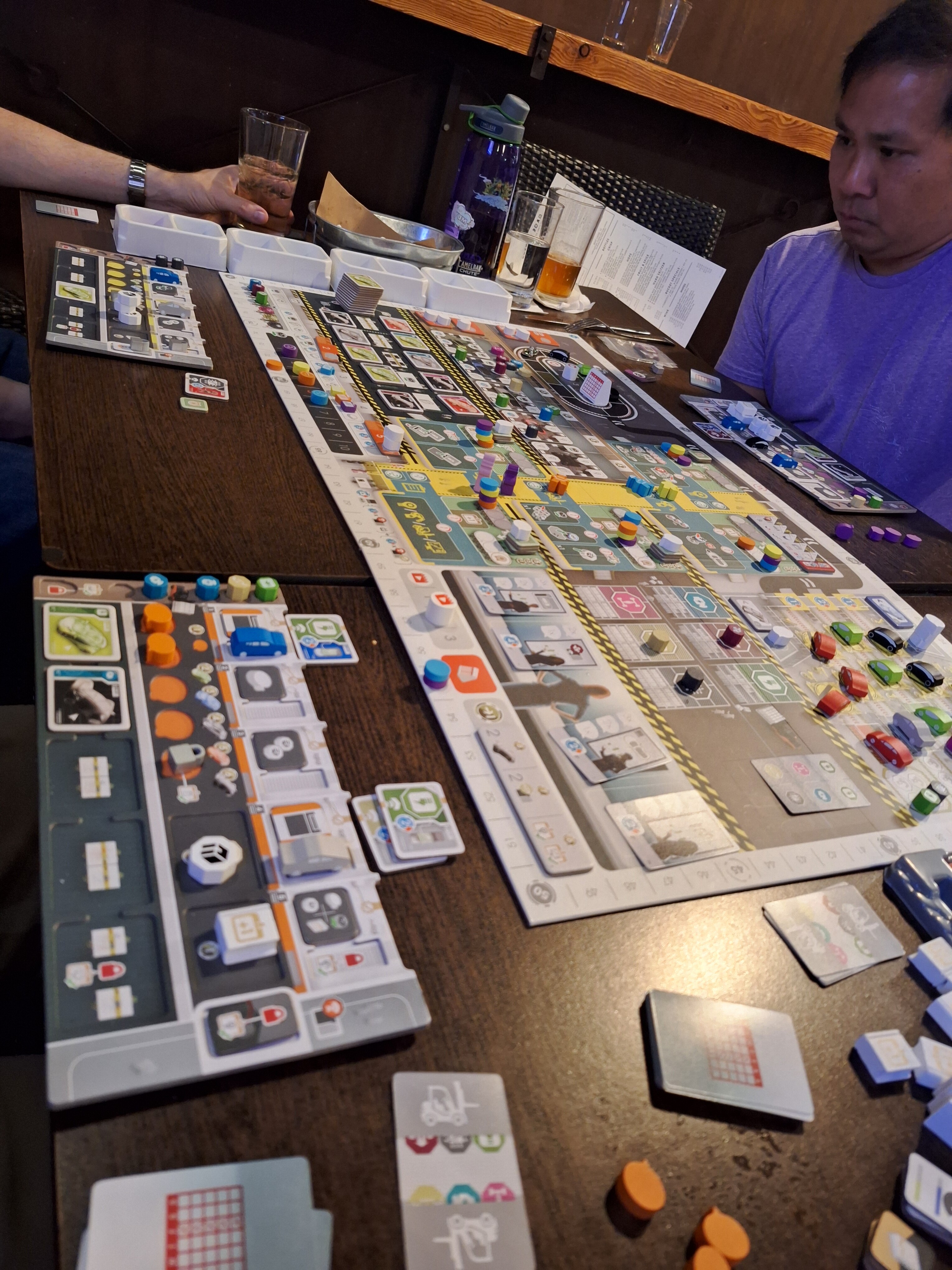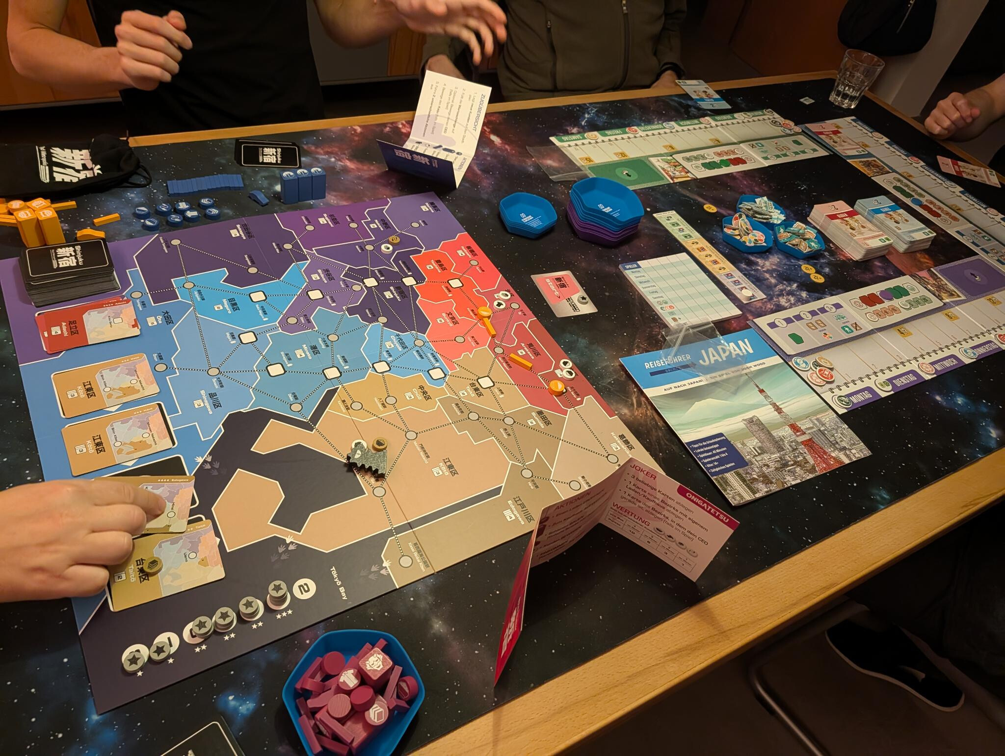 Next up someone requested Let’s Go to Japan and that only plays 4 so we set up the other half of the table with Shinjuku. Our table–surprisingly–fit both!