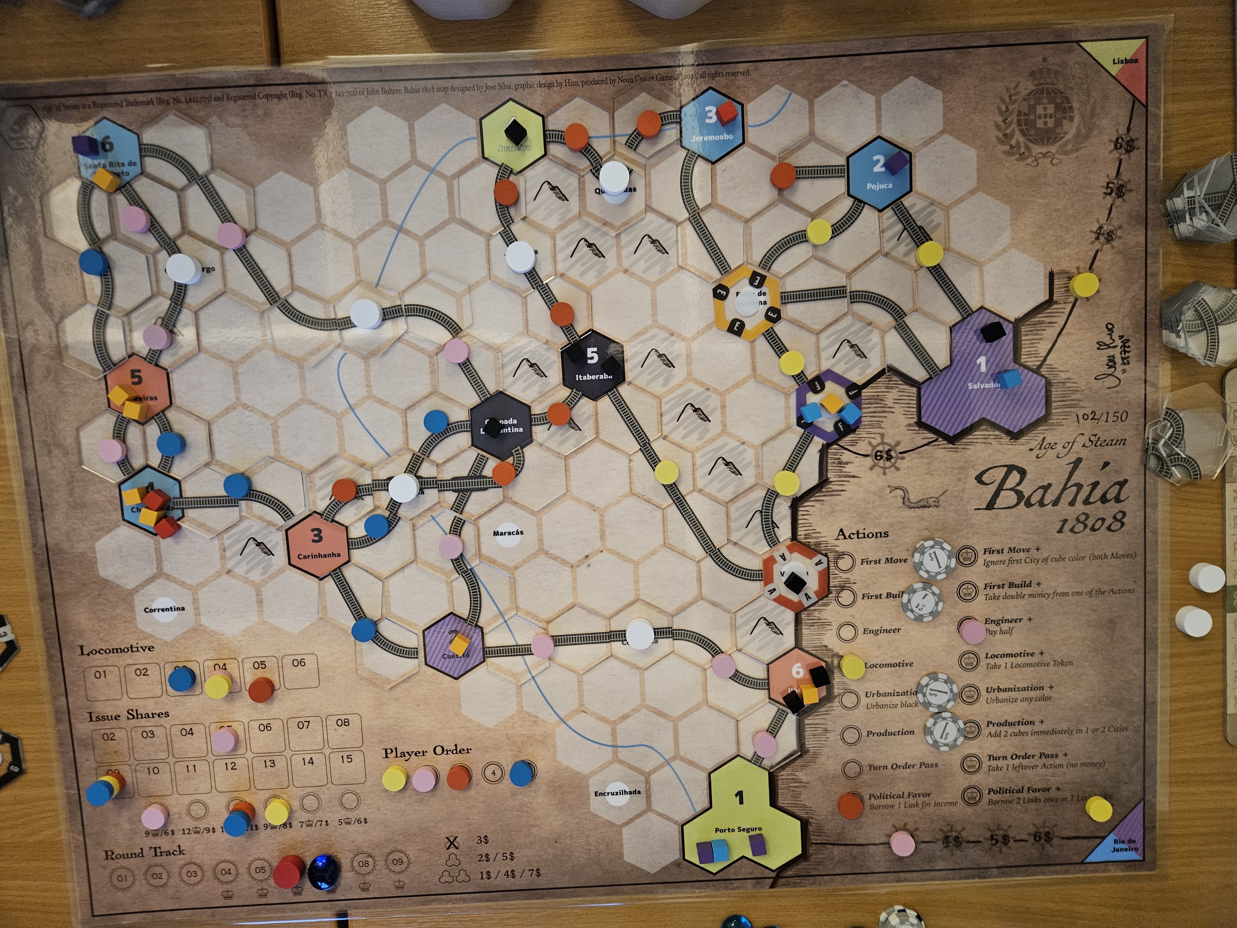 Bahia 1808 - A map with more chrome than I would like, but the changes are fun. The decision at the start of the game of how many shares you can issue max for the whole game is hard. The upgraded actions are also fun. I prefer this over France and some I will talk about below