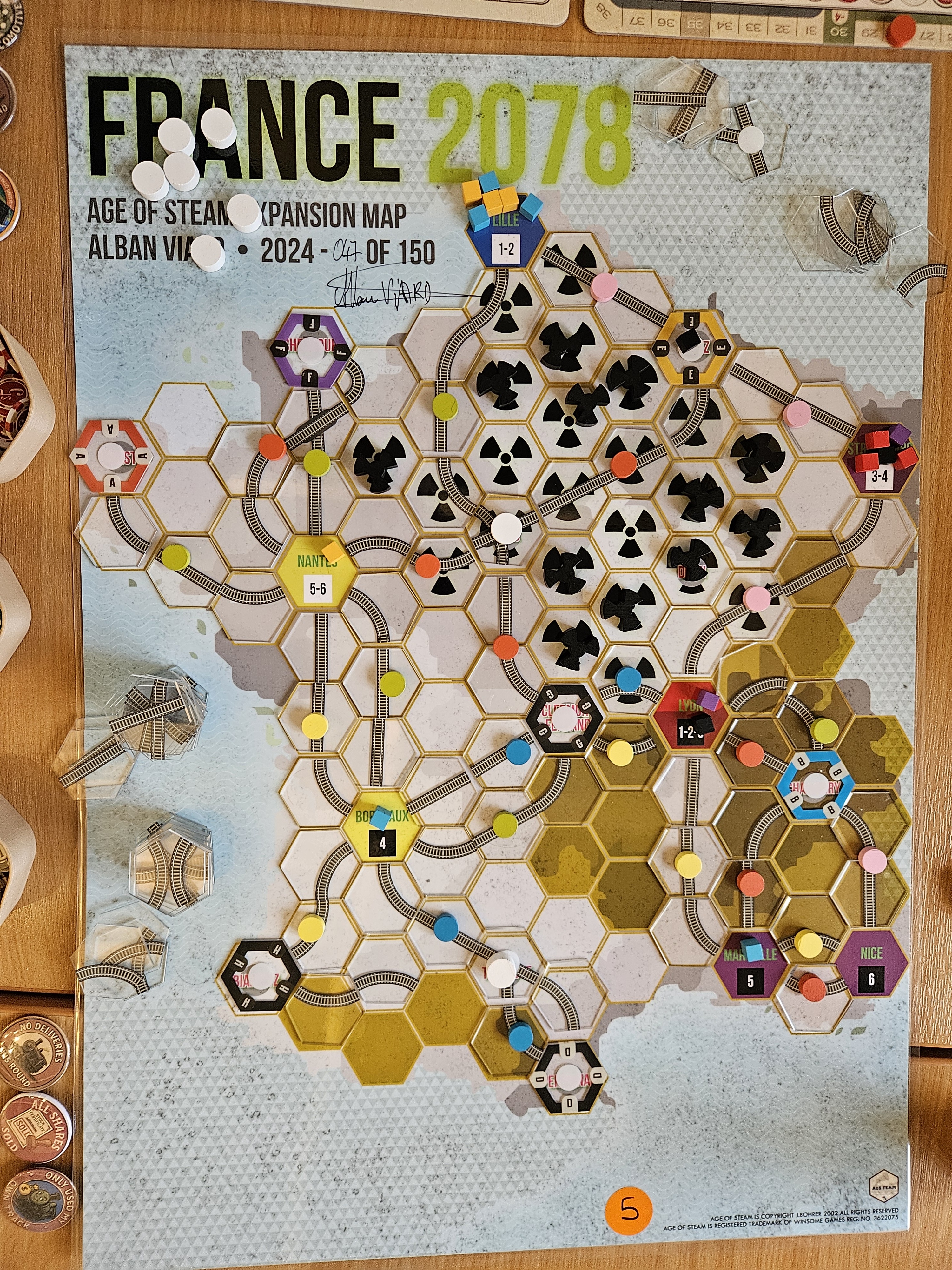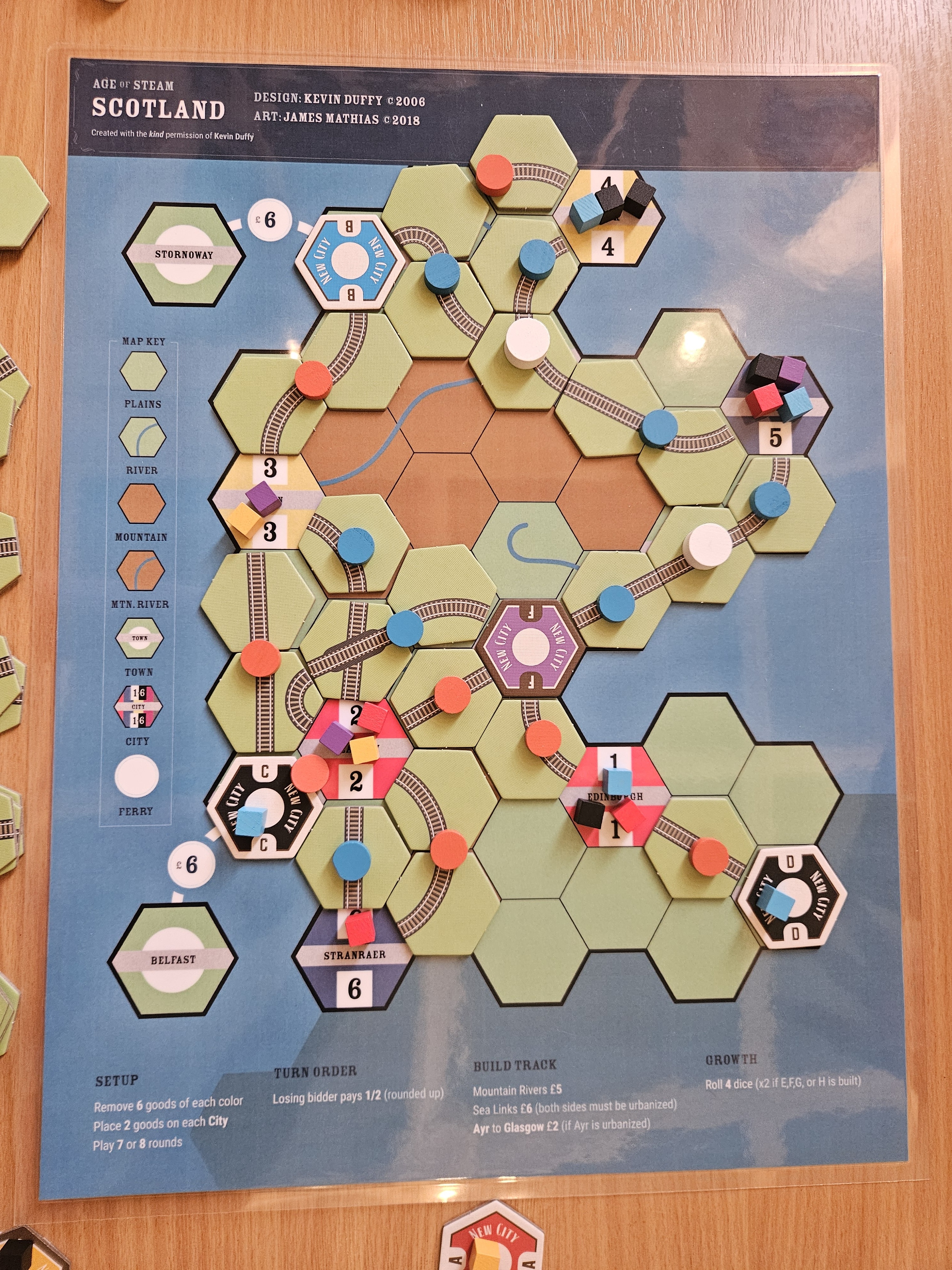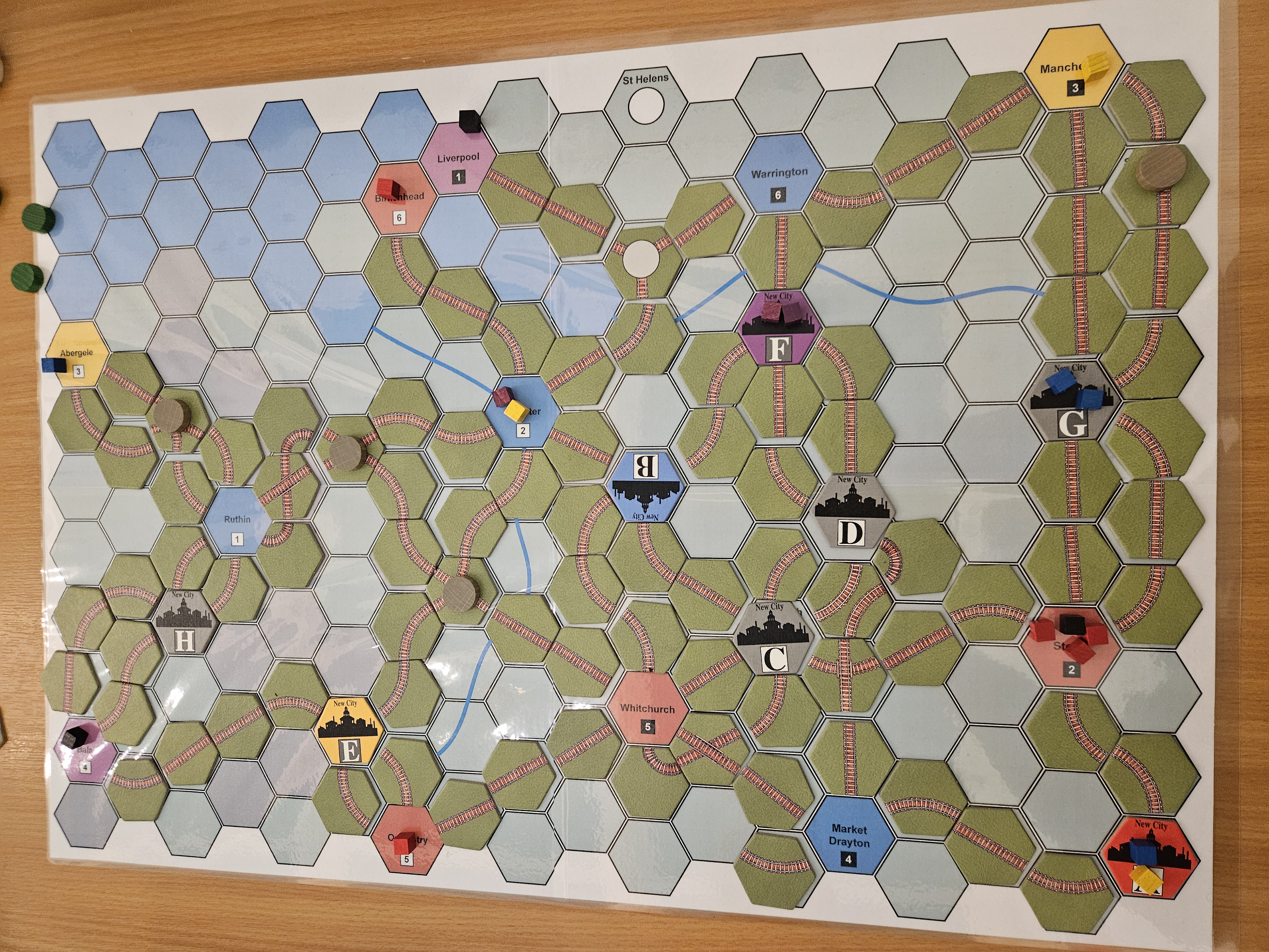 Cheshire - 4 players. I showed up at around 1pm and found myself with a starting table with JC Lawrence map. The BGG entry doesn’t state the designer but it’s JCL’s. No big rules change. Indeed, the paper only contains one line and it’s the cost of the rail tunnel between Liverpool and Birkenhead - reminds me of OG Brass (not Lancashire!! - with the special tedious rule between the same two locations.