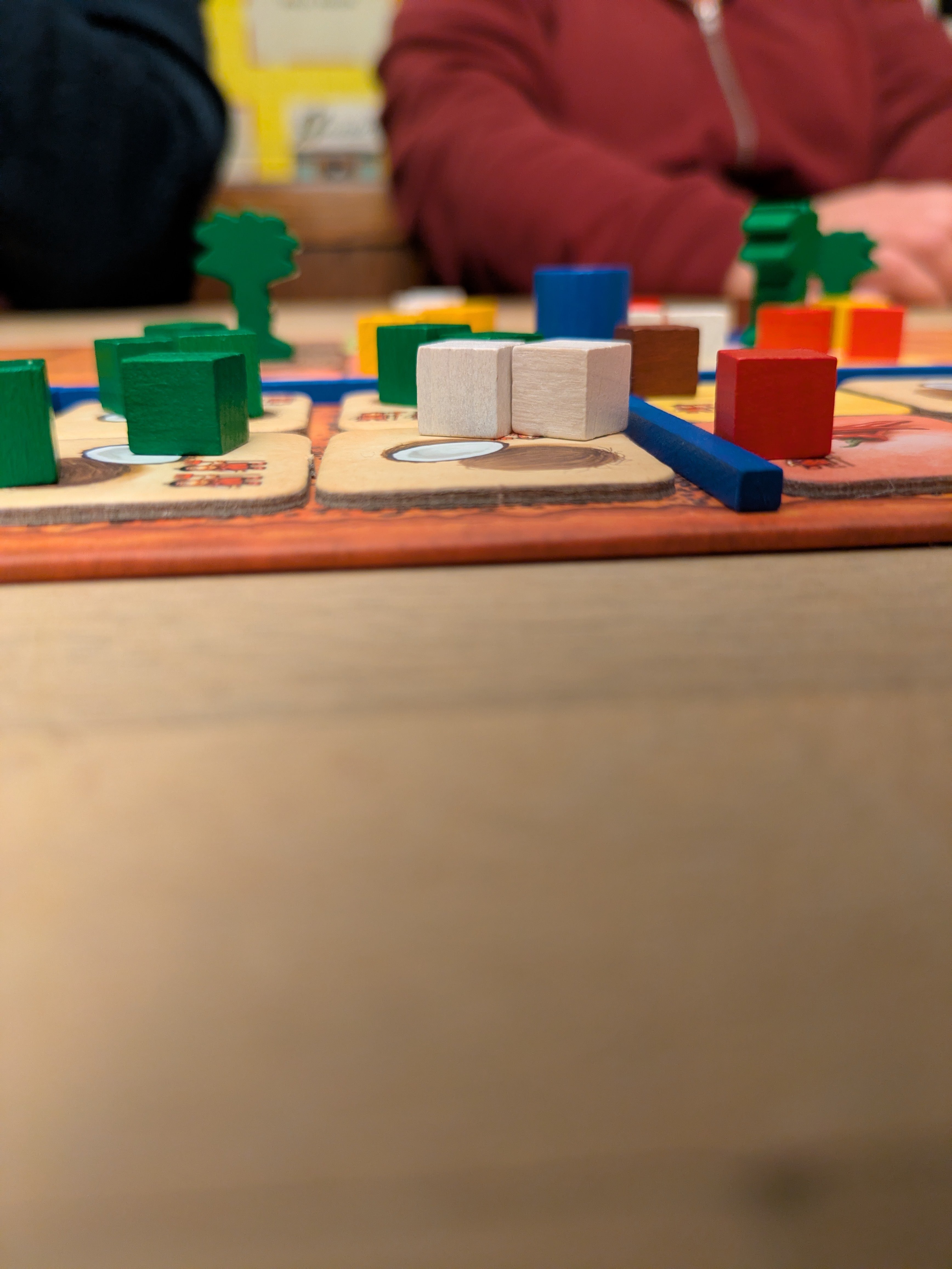 Then we played a bunch of Pick n’ Packers, which was weird in a very fun kinda way. A semi-coop dexterity game with little presents you have to balance on a piece of wood (a “drone”) and pilot with two players only able to use one finger each!? A riot.