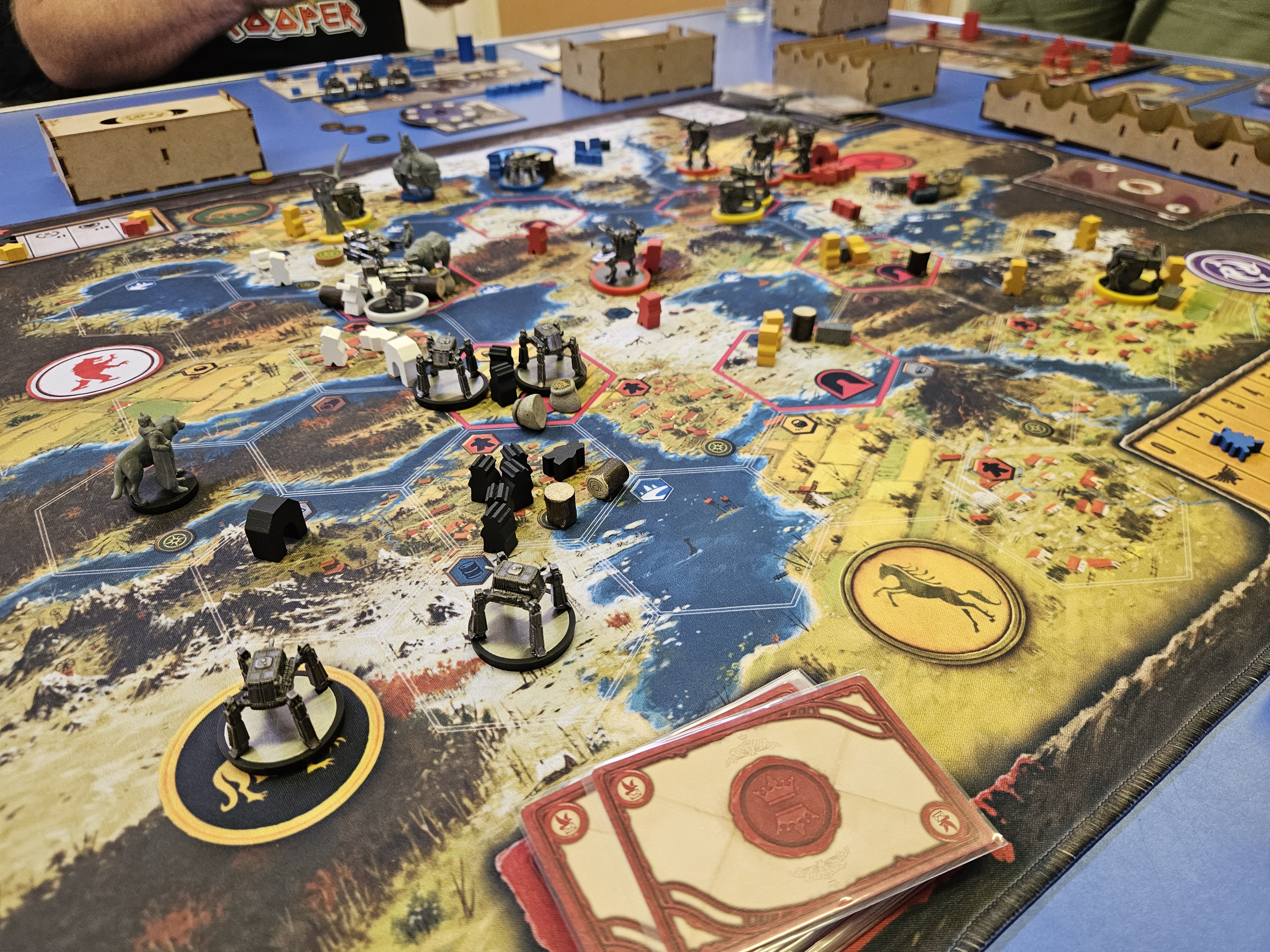 Scythe 5 players with the base factions. Light weight Euro with some area control. This remains a very good Efficiency game despite its shorfalls. It’s pros works well to me: simple enough for hobbyists to pick up while the objectives scoring remains tense.